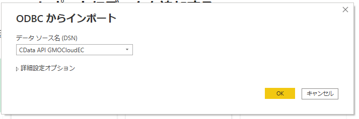 データソース名は先ほど登録したクラウドECプランのDSN を入力し「OK」をクリックします。