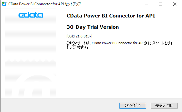 CData API Driver for Power BI をインストールします。こちらもインストールはシンプルです。EULA を確認してインストールを完了してください。
