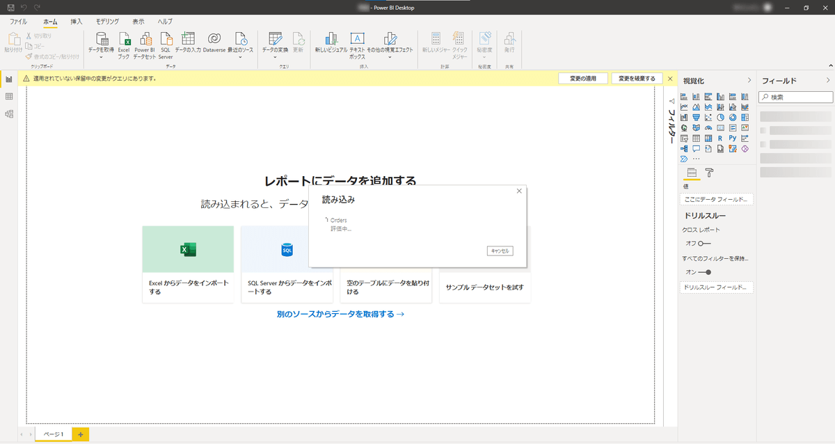 PowerBI Desktop を起動して「データを取得」をクリックします。
