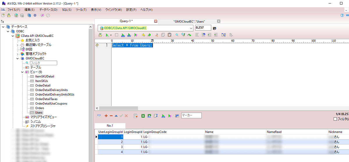 続いて、開発者に人気の高いフリーのSQL クライアントである A5:SQL Mk-2 からクラウドECプランのデータを取得します。