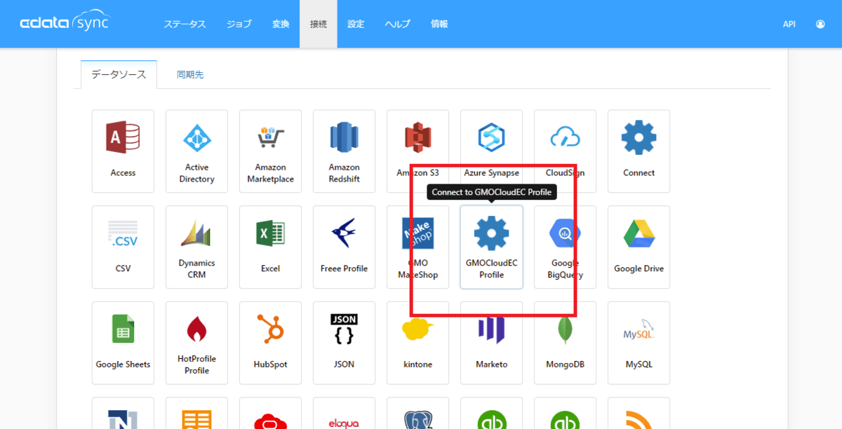 CData Sync ではデータソース(連携元)として、クラウドECプランに接続することができます。