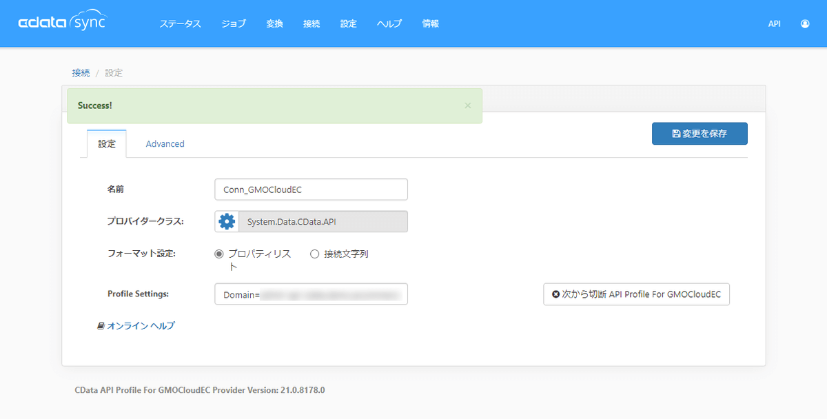 これで CData API Driver からクラウドECプランAPI への接続が完了します。