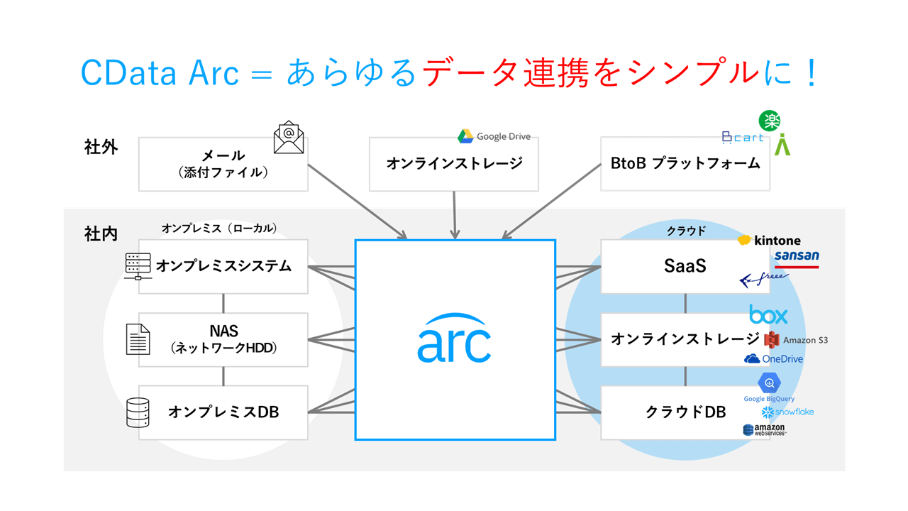 この中継ぎ役を担えるツールの一つが、弊社のCData Arc です。