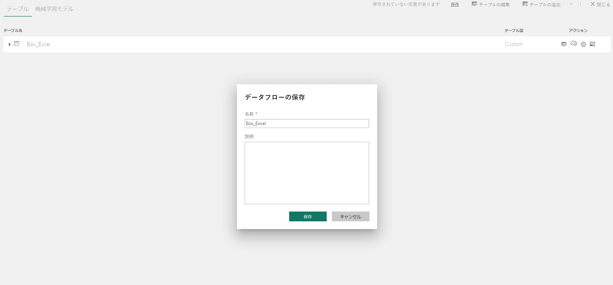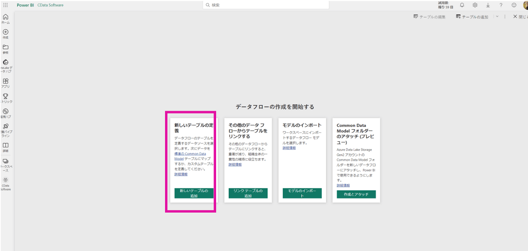 「データフロー の作成を開始する」にて「新しいテーブルの追加」をします。
