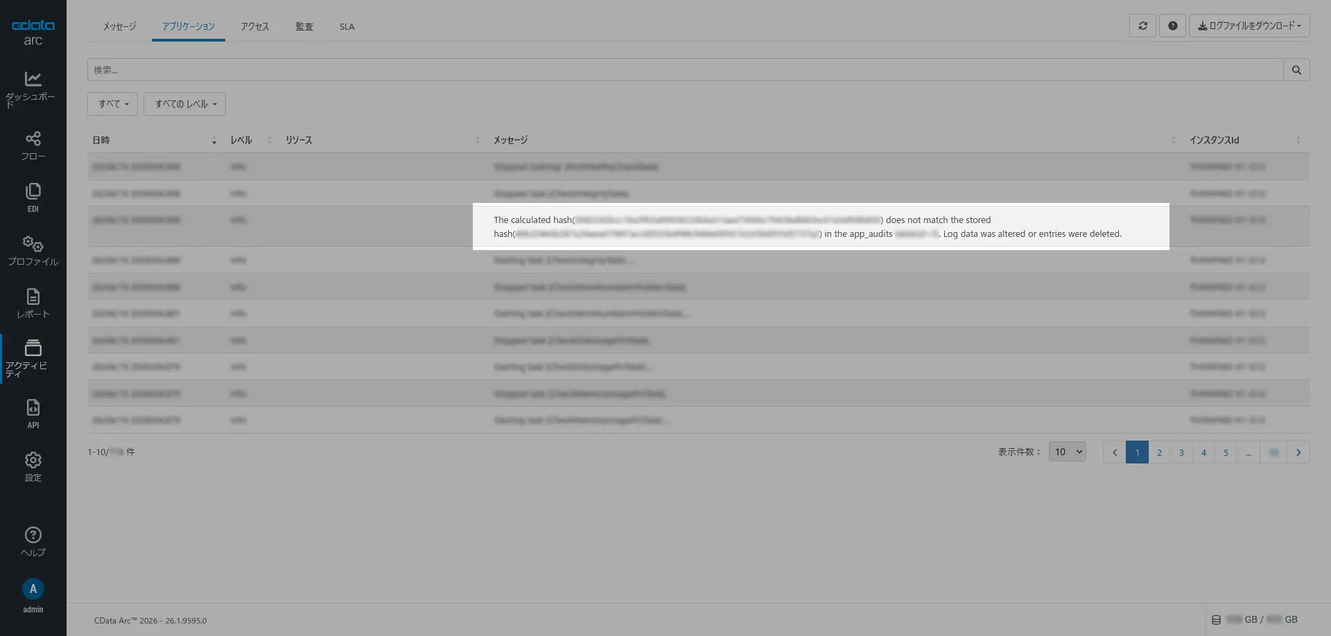 改ざん検知ログ