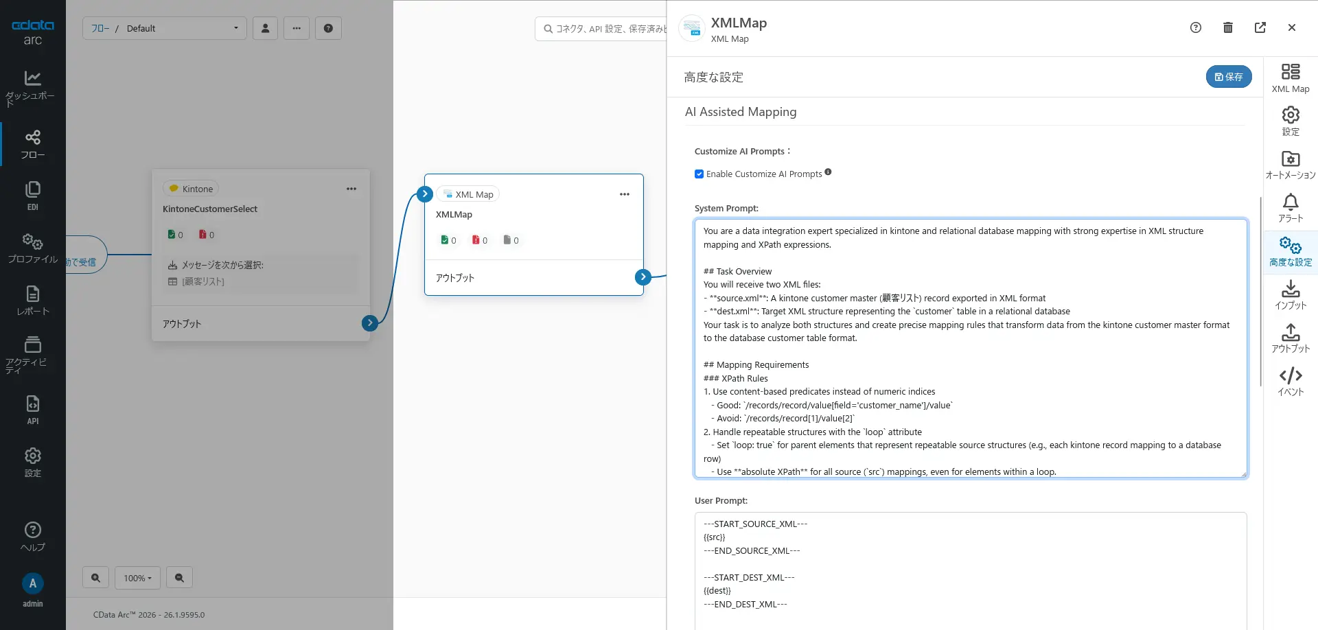 XML Map(マッピングエディタ)でのAI プロンプトのカスタマイズ
