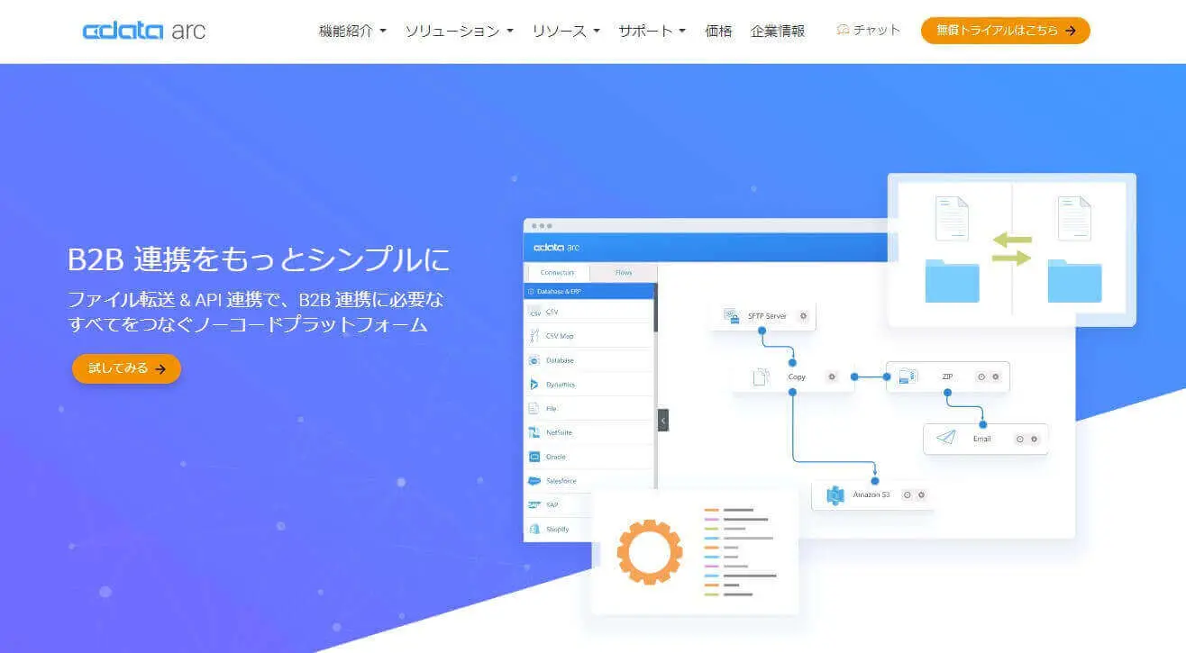 CData Arc はシンプルで拡張性の高いコアフレームワークに、豊富なMFT・EDI・エンタープライズコネクタを備えたパワフルな製品です。CData Drivers との組み合わせで270を超えるアプリケーションへの連携を実現できます。