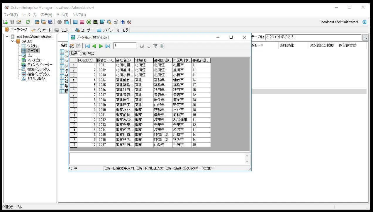 この記事では、サンプルとして用意されている「SALES」データベースの「顧客マスタ」を取得してみます。