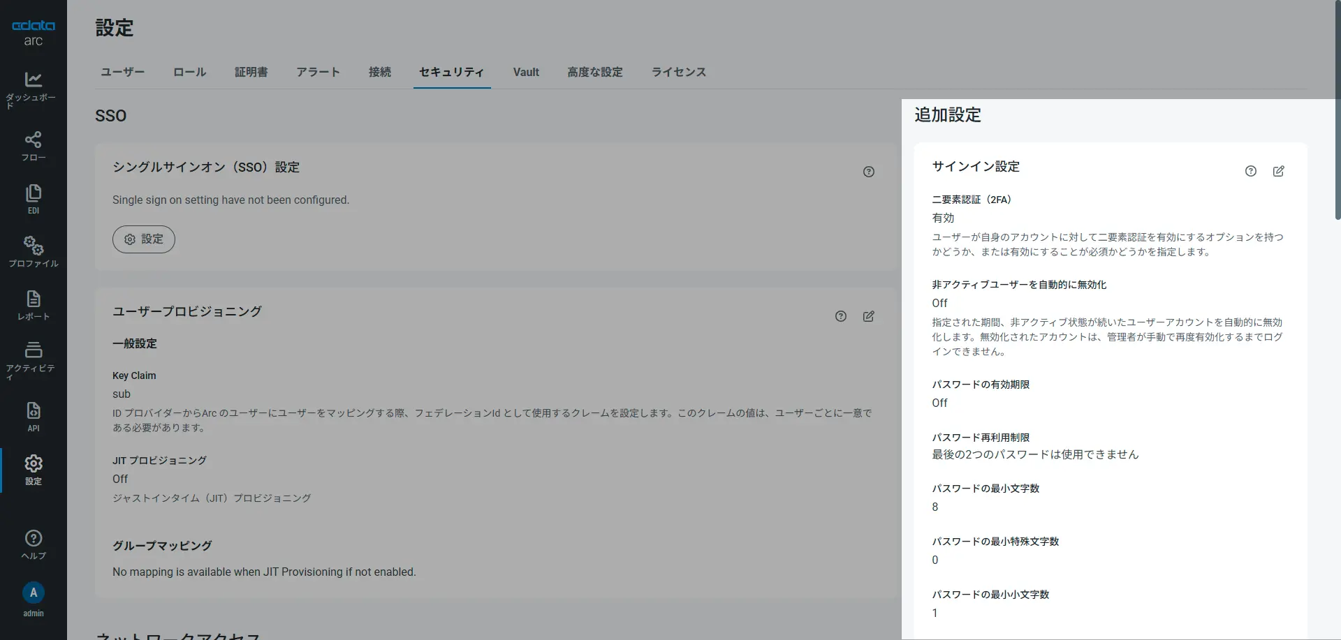 CData Arc はデータ連携の自動化基盤としてエンタープライズ企業にも数多く利用いただいていますが、様々なデータを扱う性質上、Arc のユーザーアカウントの保護は大切です。Arc では、組織のセキュリティポリシーへの準拠が必要なエンタープライズでの利用シーンに向けて、アカウントのセキュルティポリシーを管理できるサインイン設定を提供しており、アカウントログイン時の追加保護としてArc ネイティブの二要素認証(2FA)もサポ-トしています。