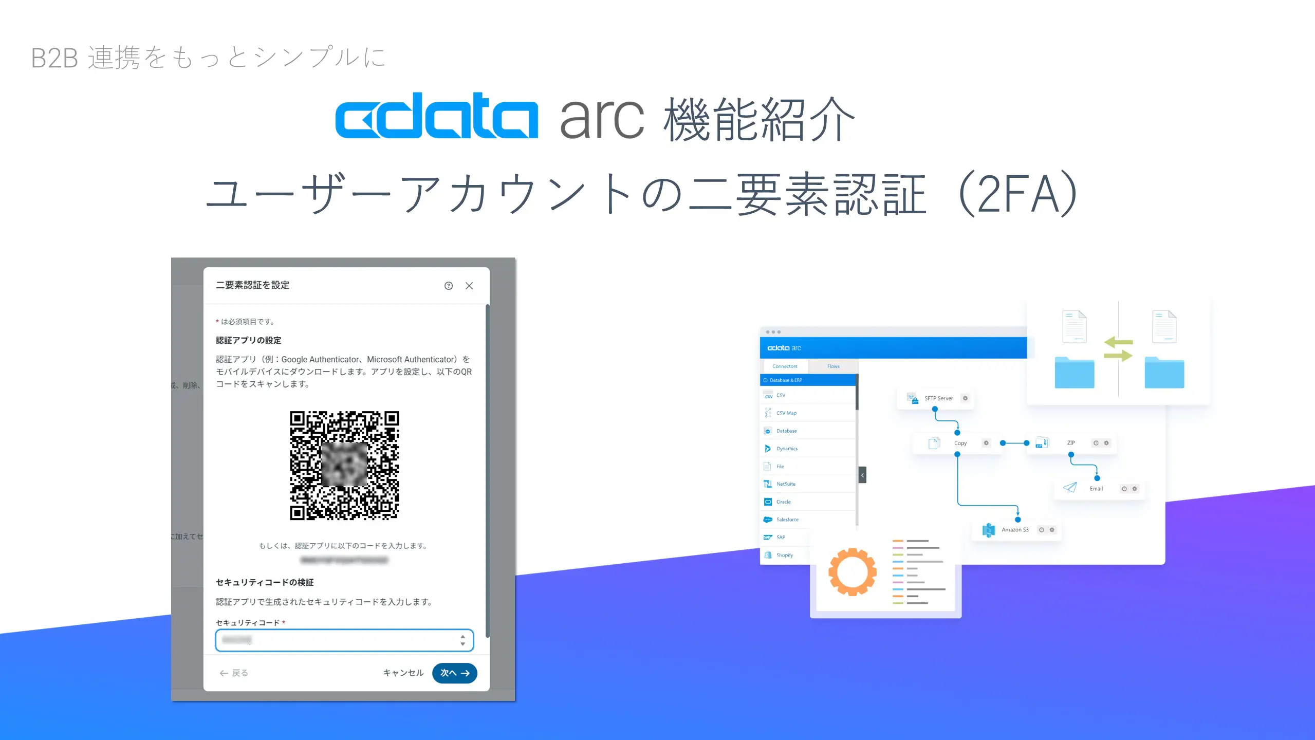 この記事では、CData Arc の「二要素認証(2FA)」の設定や動作イメージについてご紹介します。