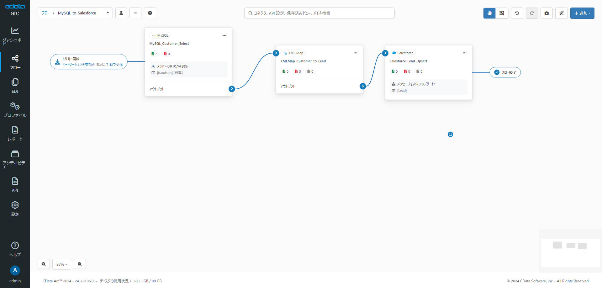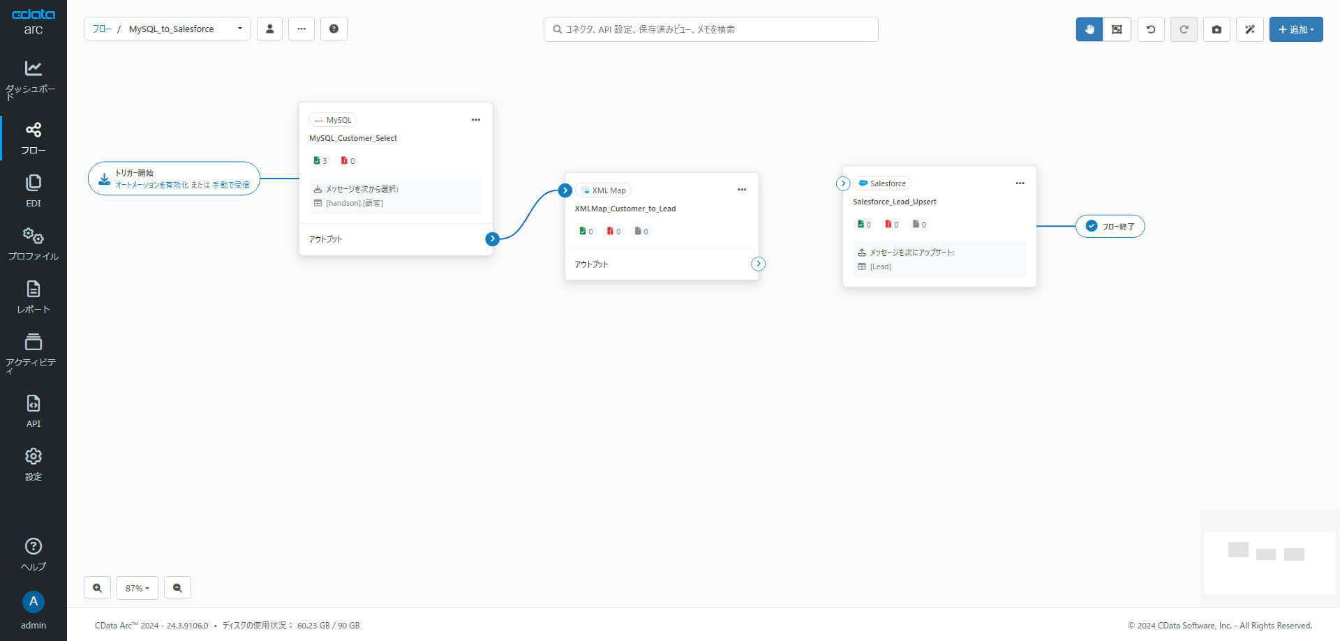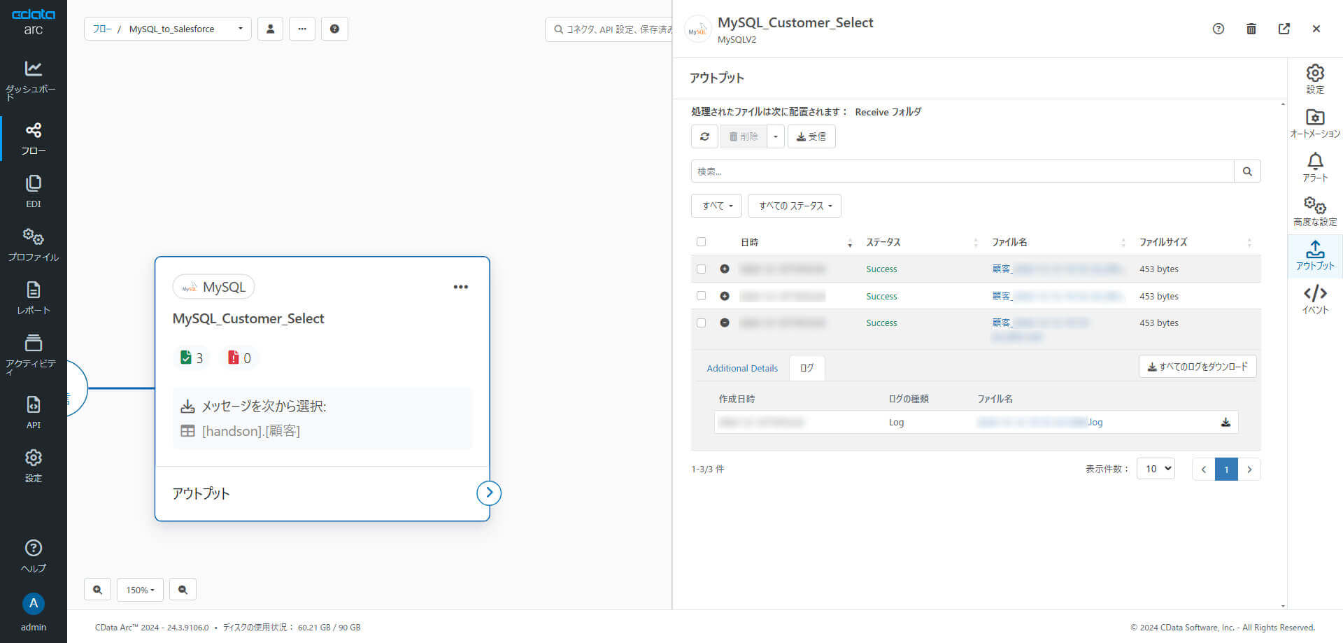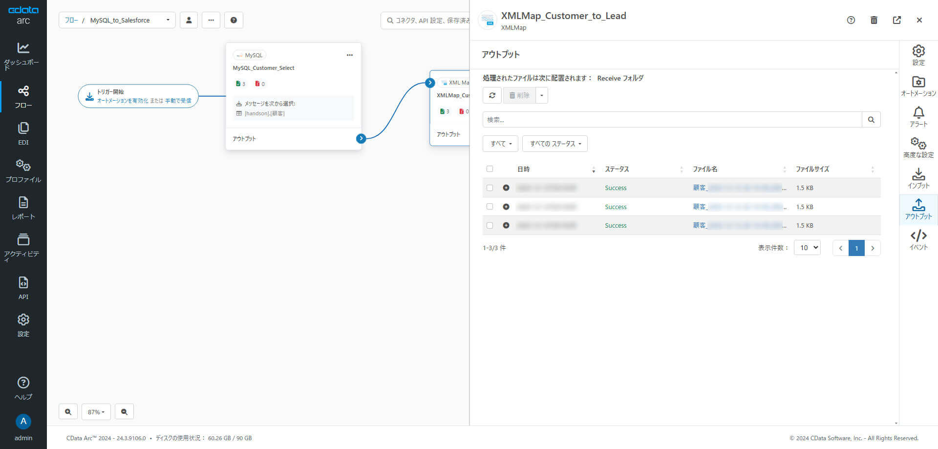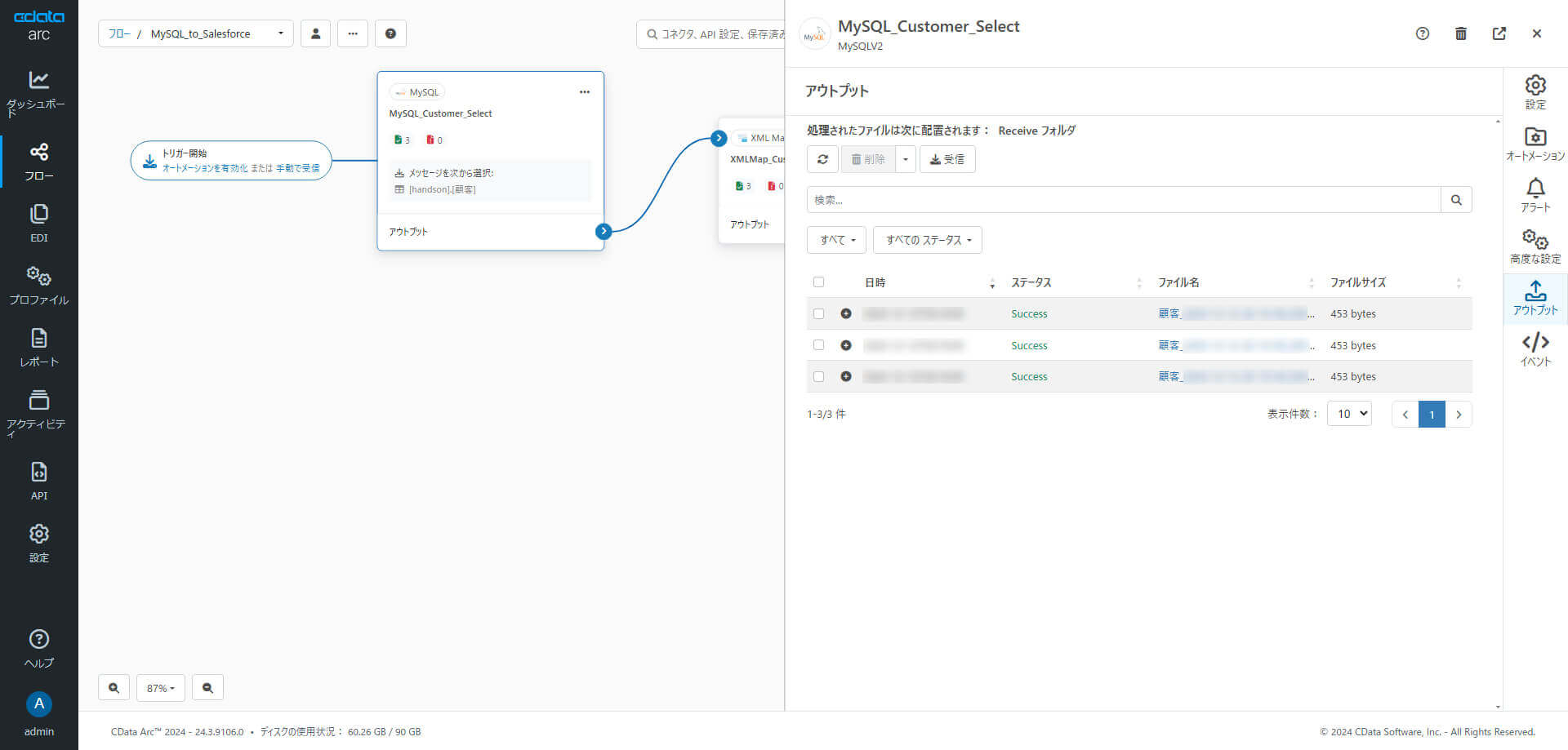 このようにCData Arc ではコネクタ単位に設定や動作を確認しながらフロー作成を進めることができます。