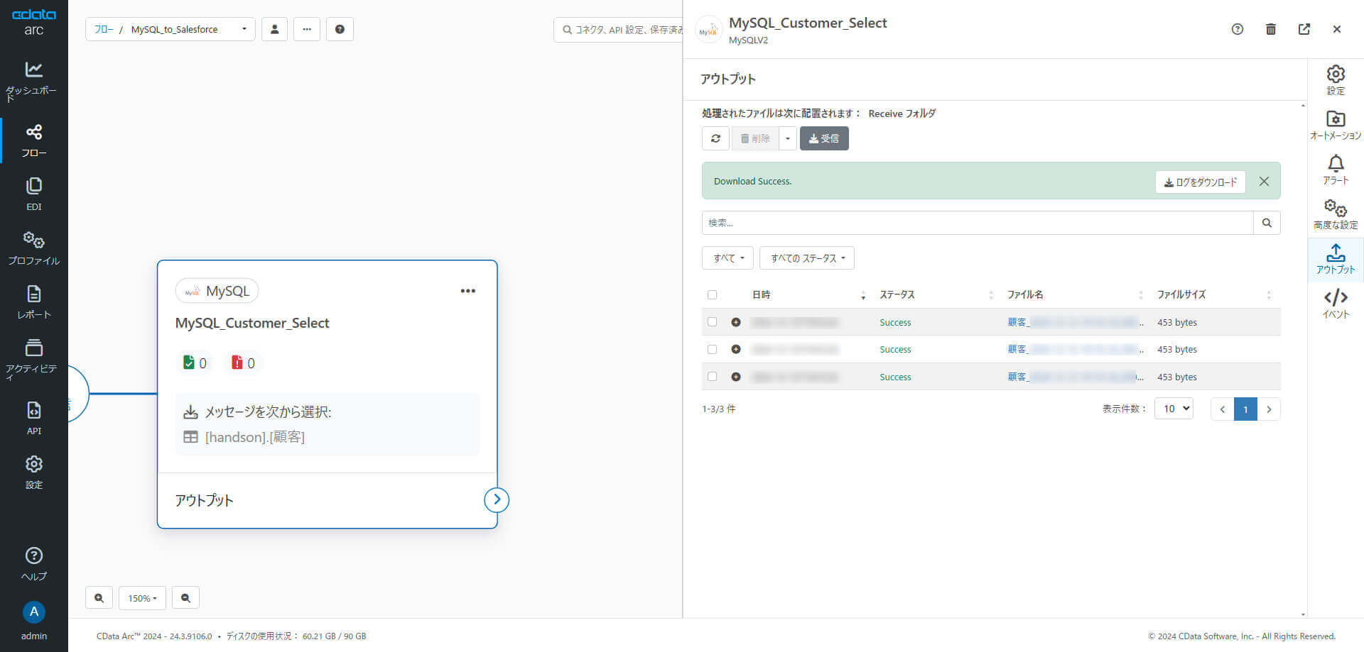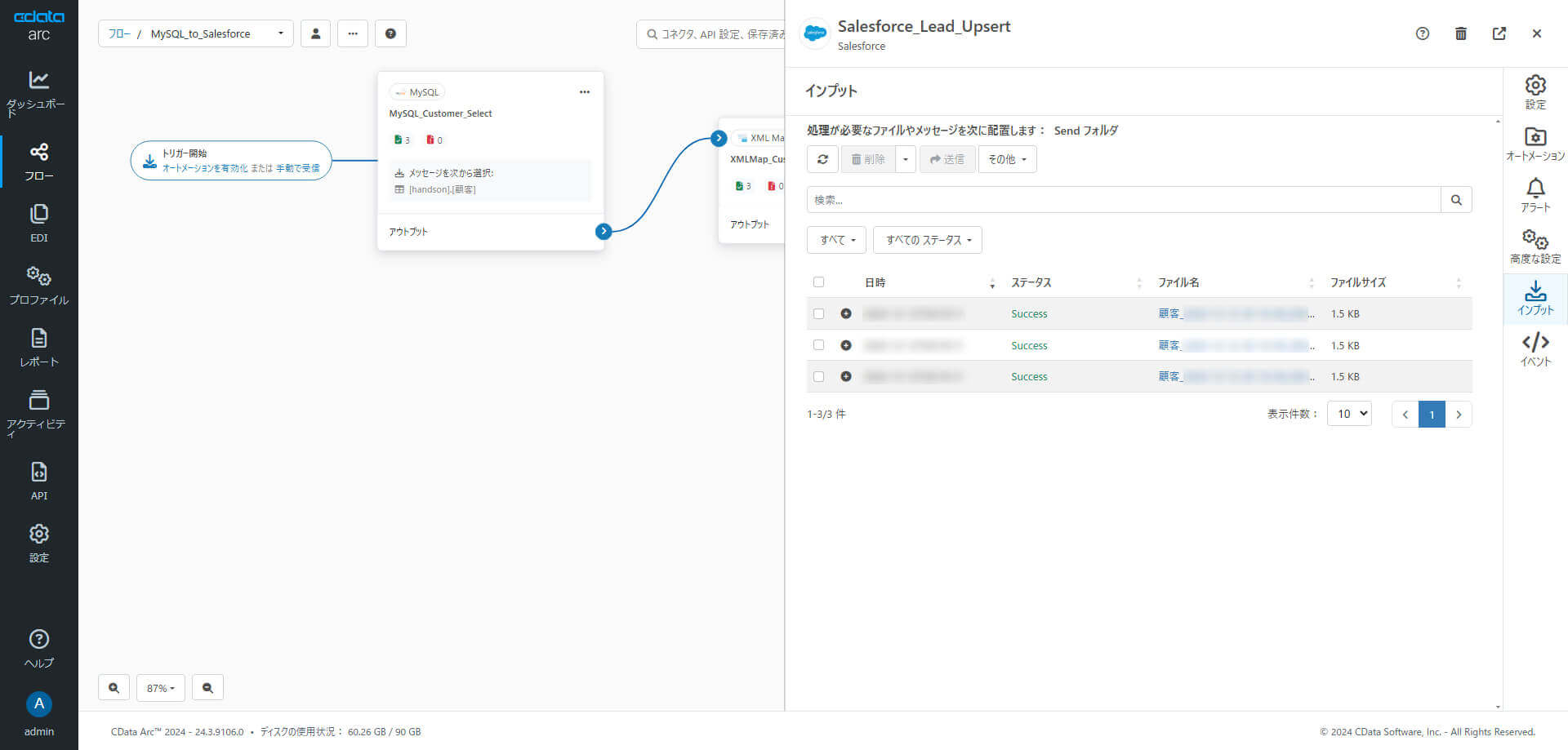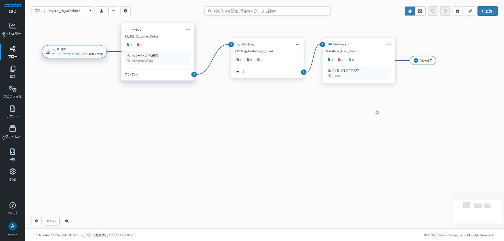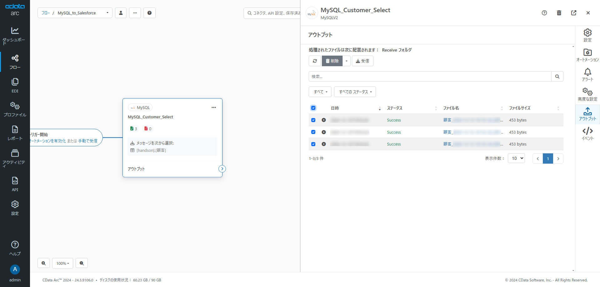このようにCData Arc ではコネクタ単位に設定や動作を確認しながらフロー作成を進めることができます。