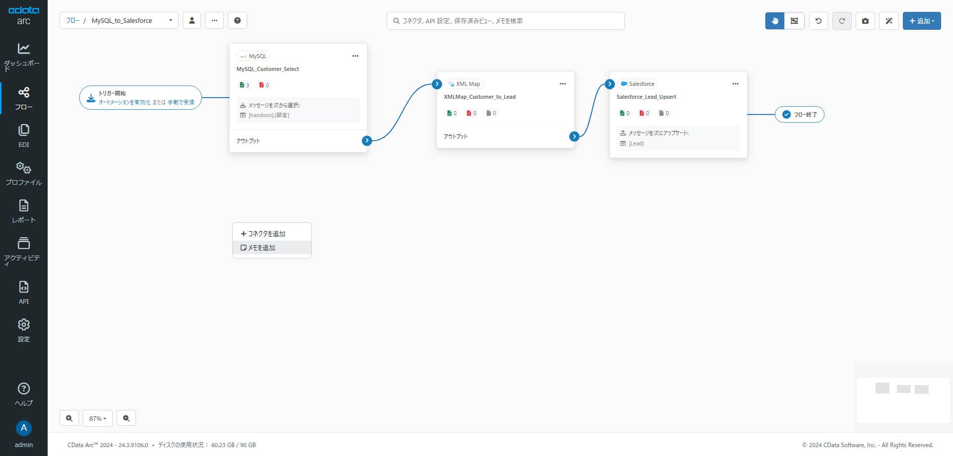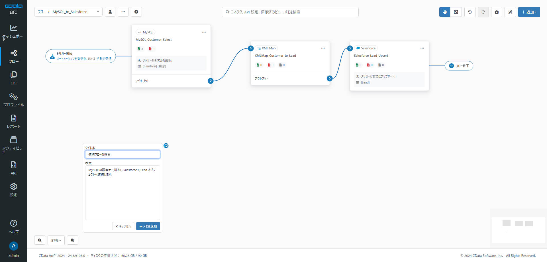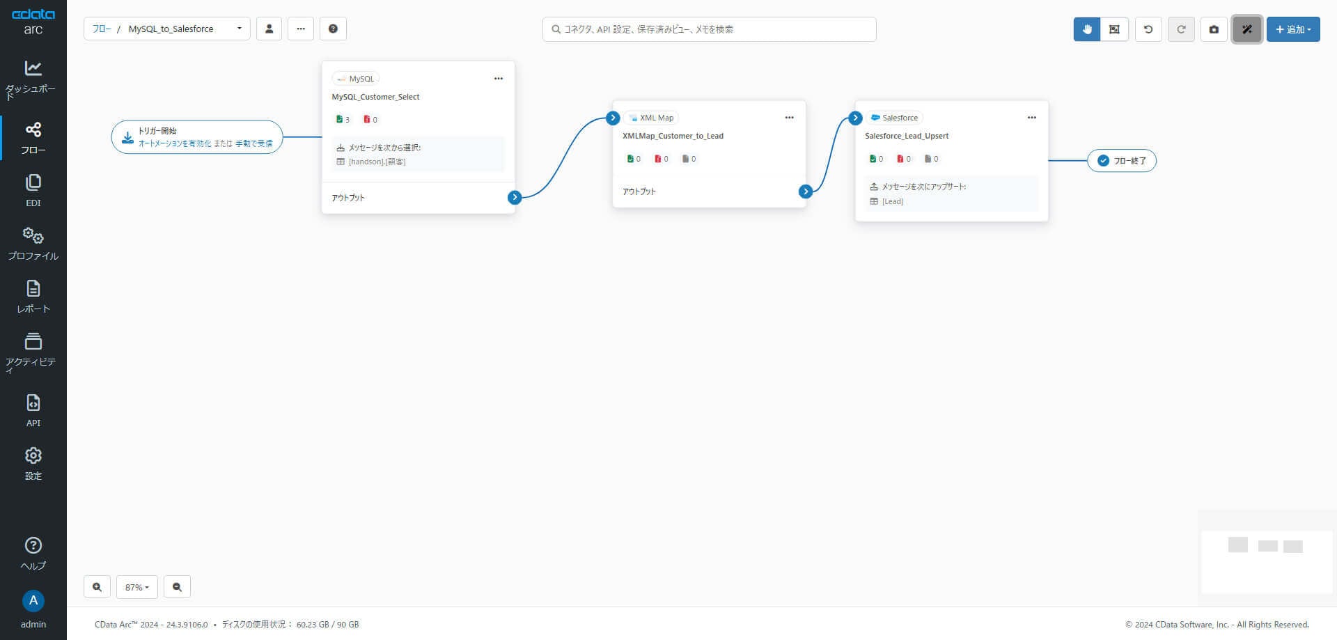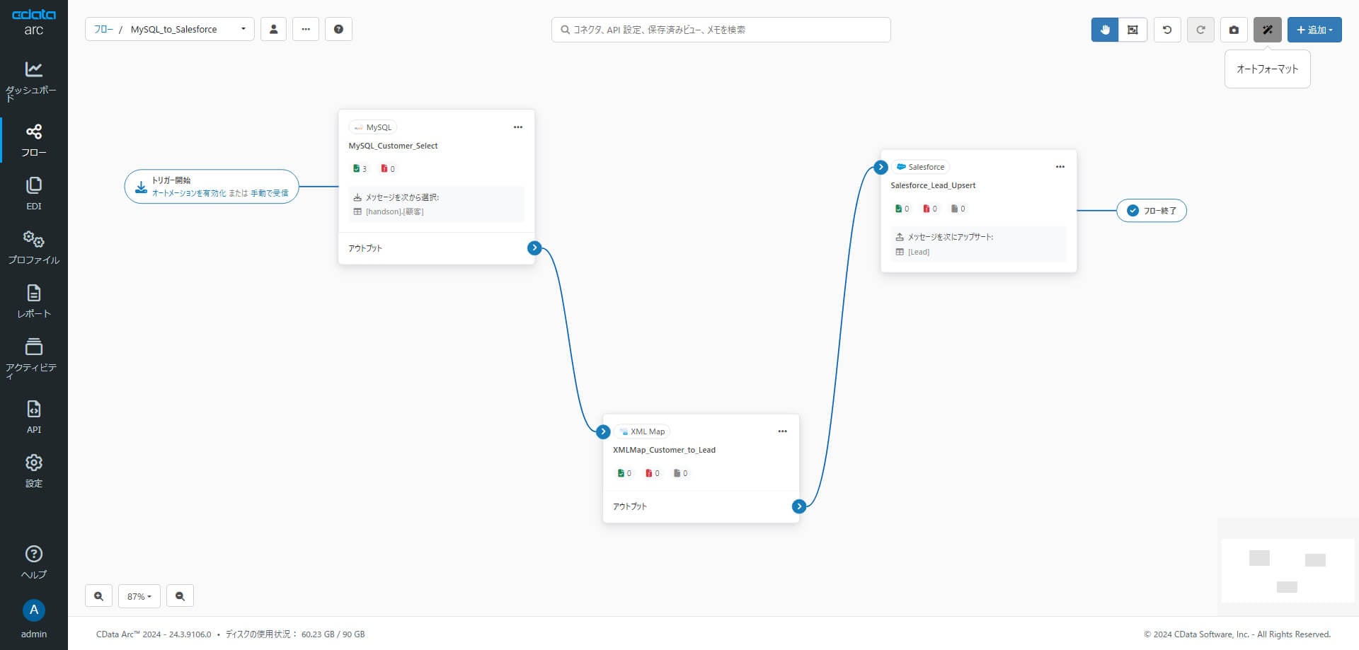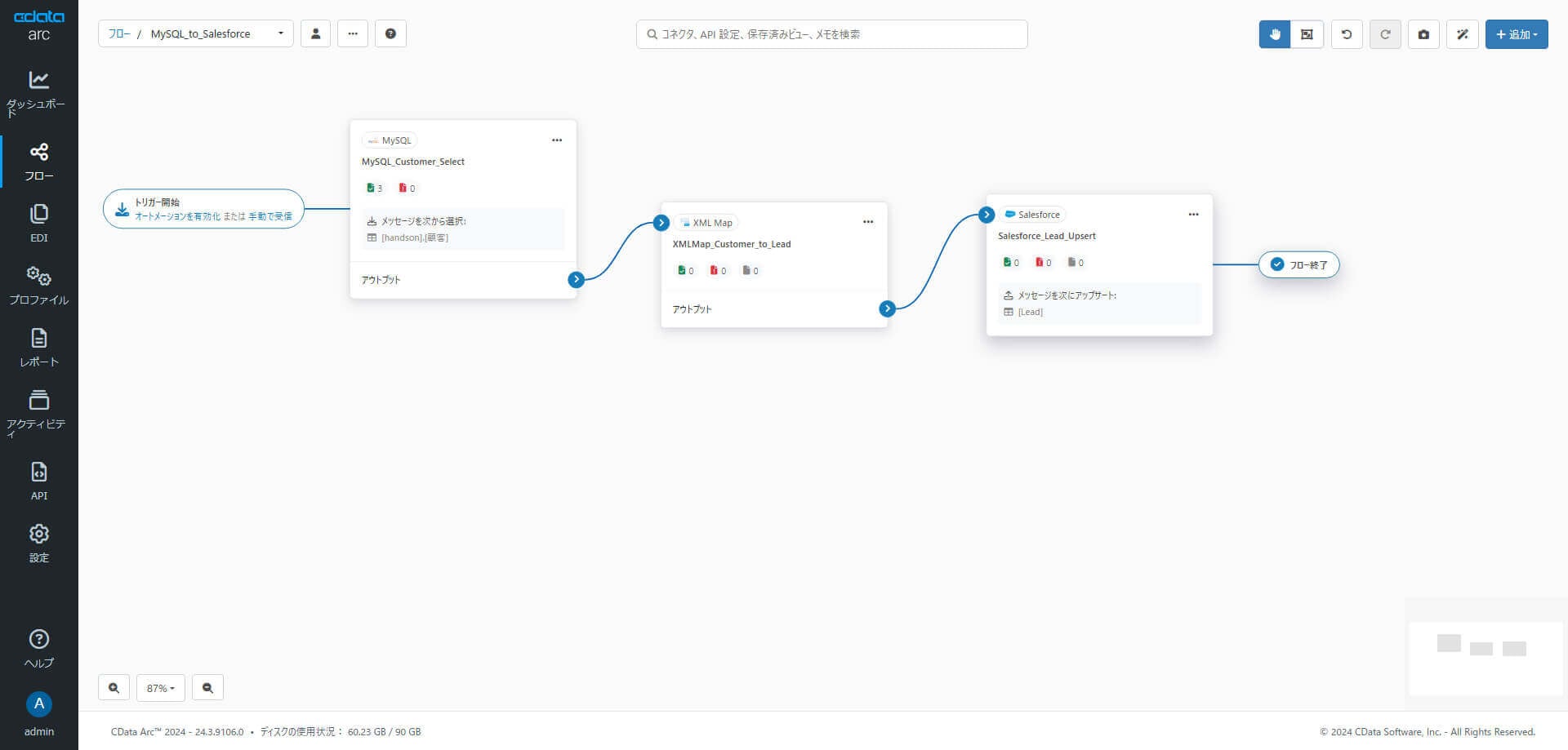 このようにCData Arc ではコネクタ単位に設定や動作を確認しながらフロー作成を進めることができます。