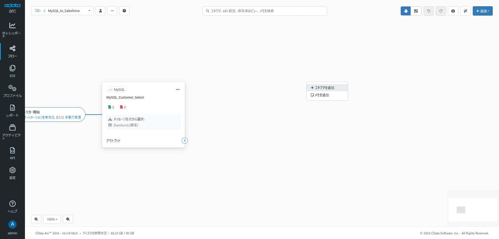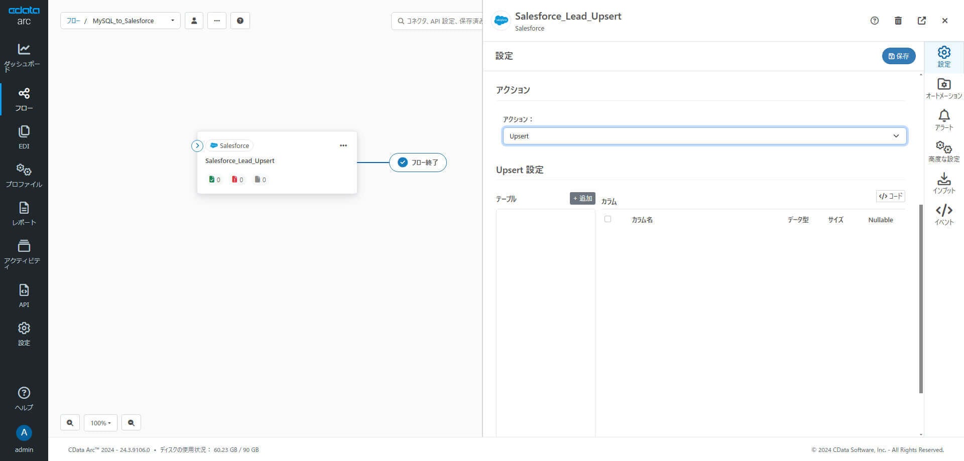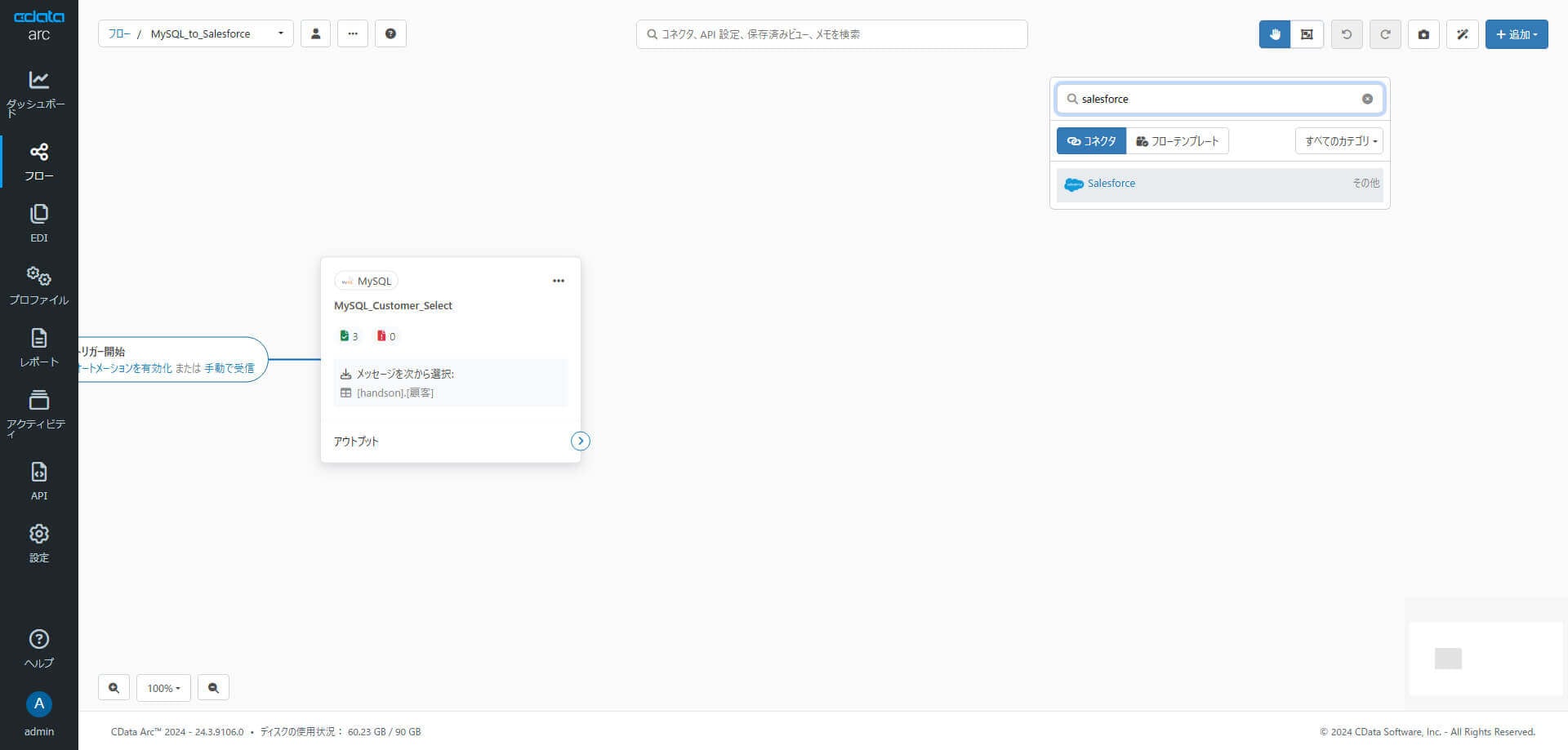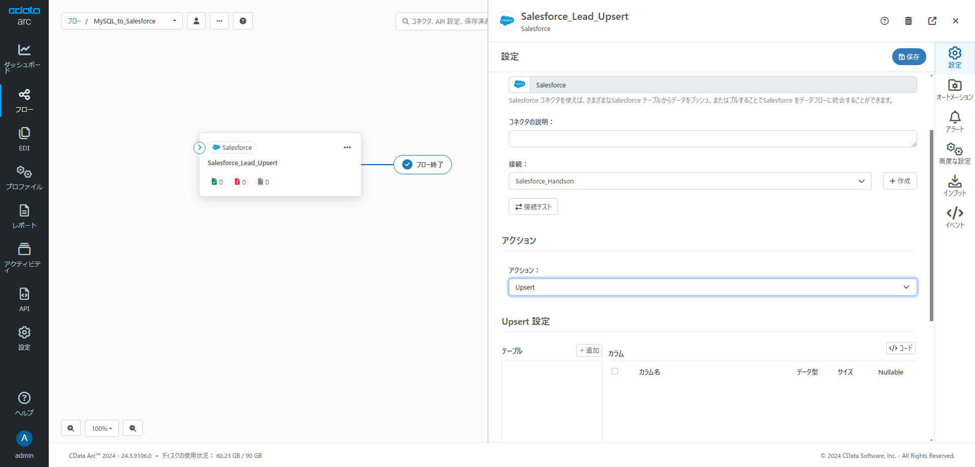 このシナリオではMySQL から取得(Select)したデータをSalesforce に更新(Upsert)します。