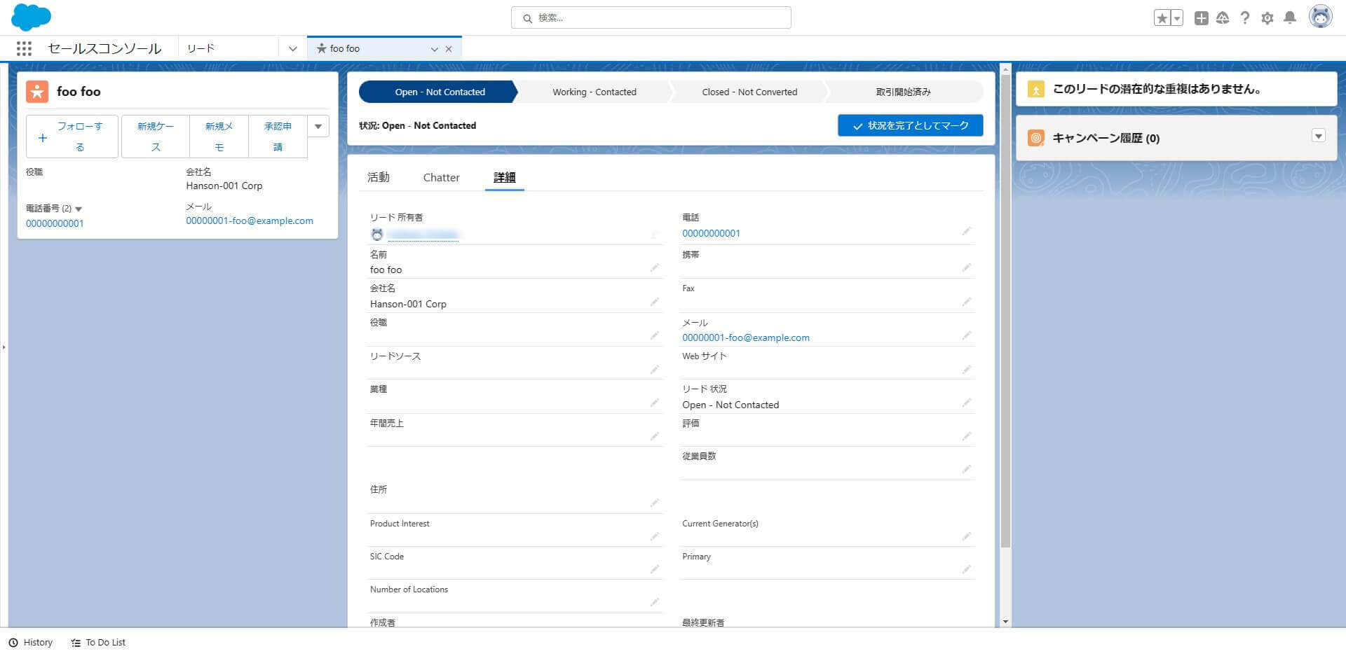 ハンズオンセミナーでは参加される方が同一のSalesforce 組織へ更新しますので、更新結果はハンズオンセミナーで利用するSalesforce 組織に用意されている「私のリード」リストビューを確認してください。
