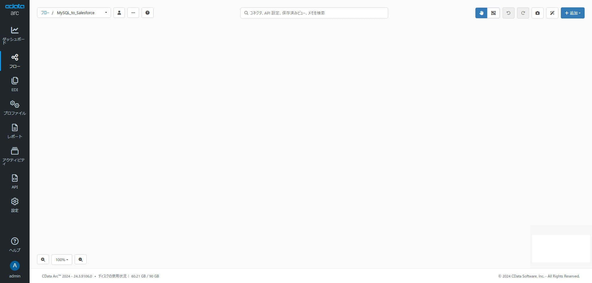 このシナリオでは、この「MySQL_to_Salesforce」ワークスペースにフローを作成していきます。