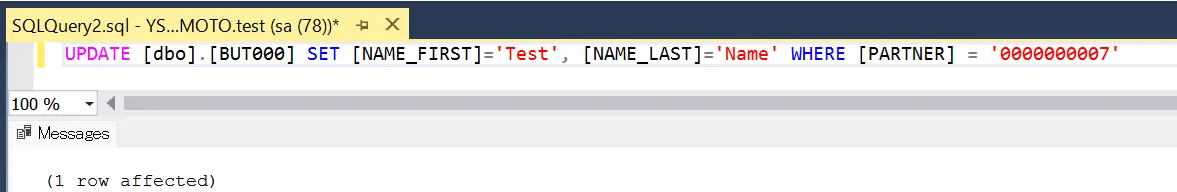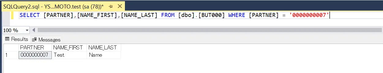 フロー実行後にSQL Server 側のデータを確認すると、SAP S/4 HANA でアクセス出来るBUT000 テーブルの内容が連携されていることを確認出来ます。