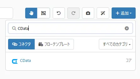 ワークスペースの右上にある「追加」ボタンから「CData コネクタ」を検索して追加します。