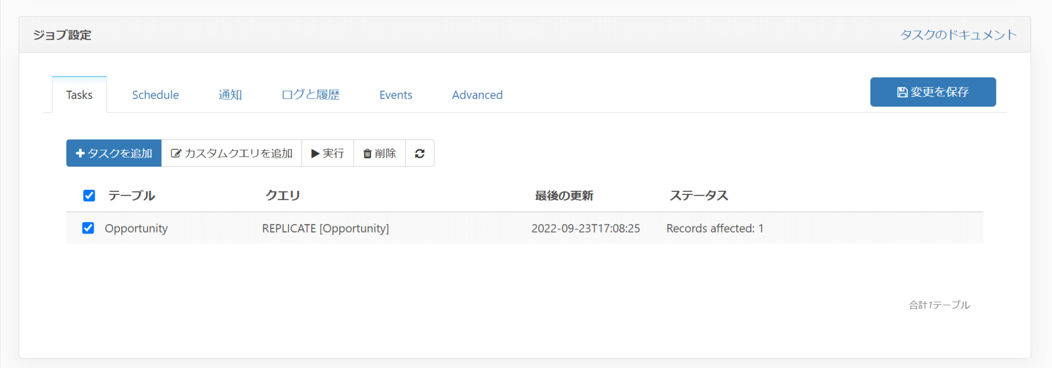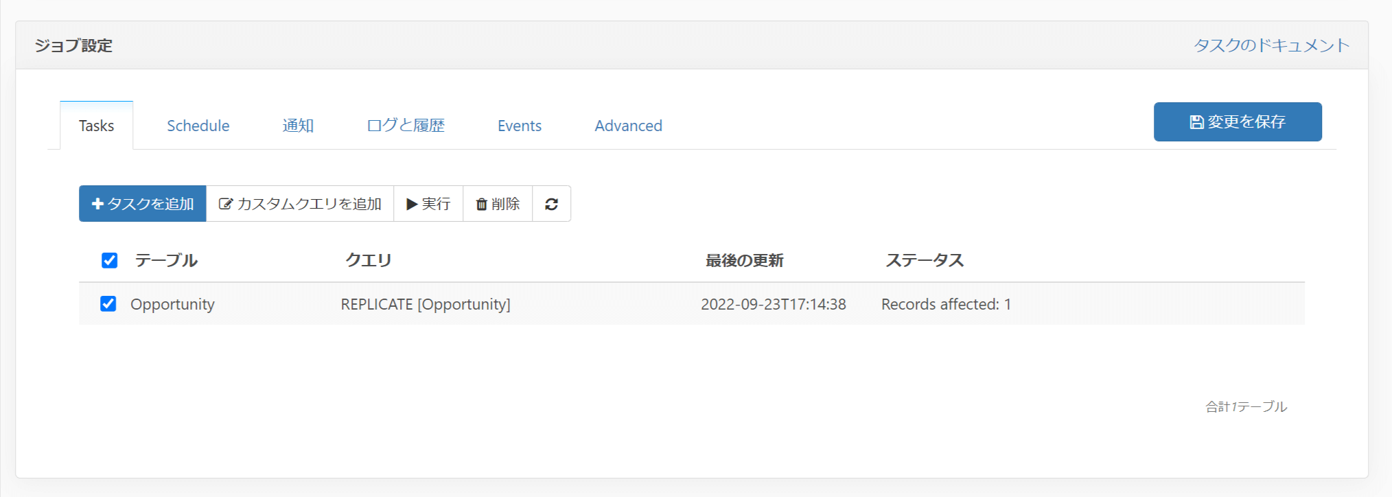 これで再度レプリケーションのジョブを実行すると、1件だけレコードが反映されました。
