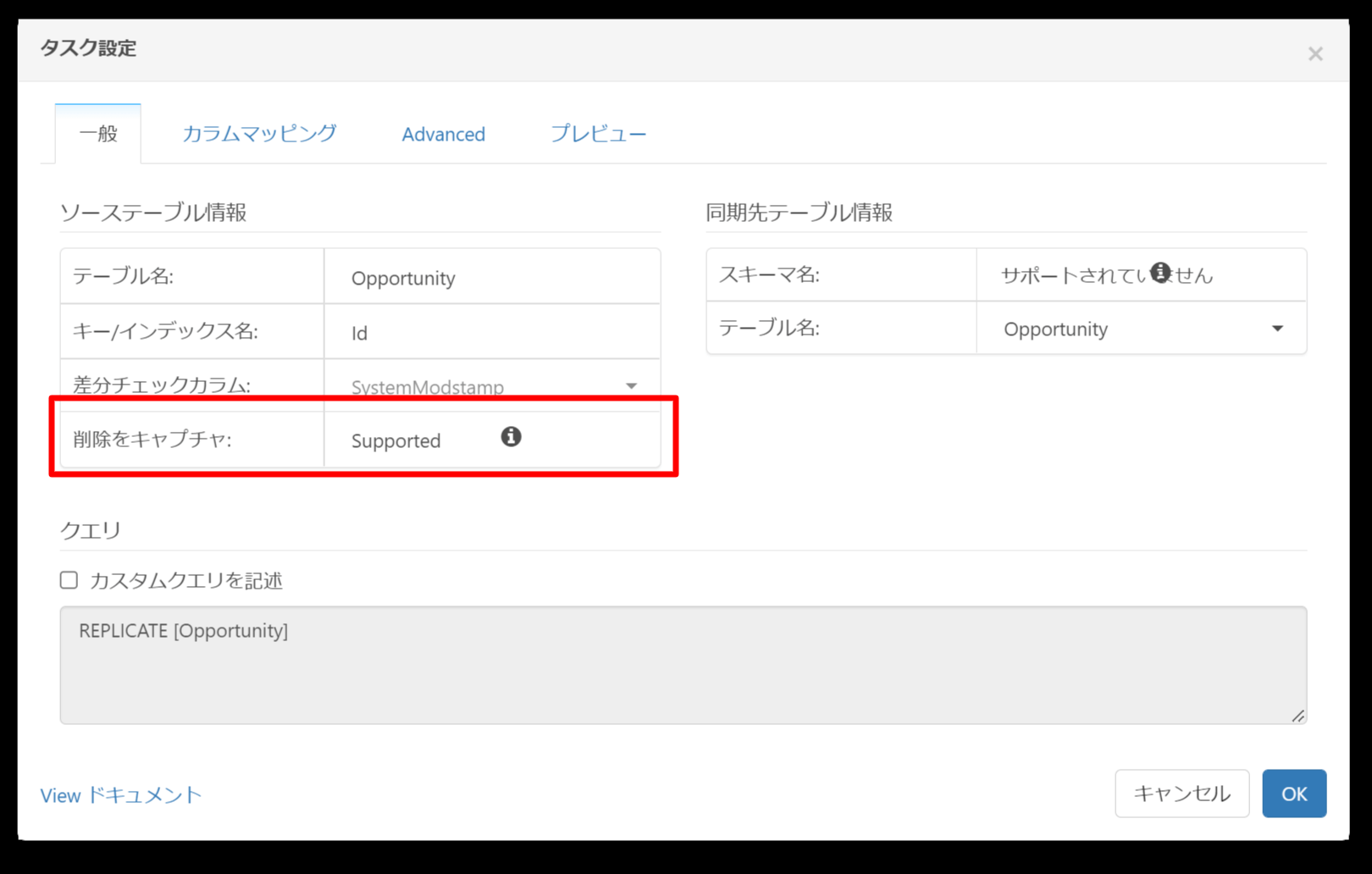 ただしこの機能は「削除をキャプチャ」がサポートされているデータソースのみが有効なので注意しましょう。