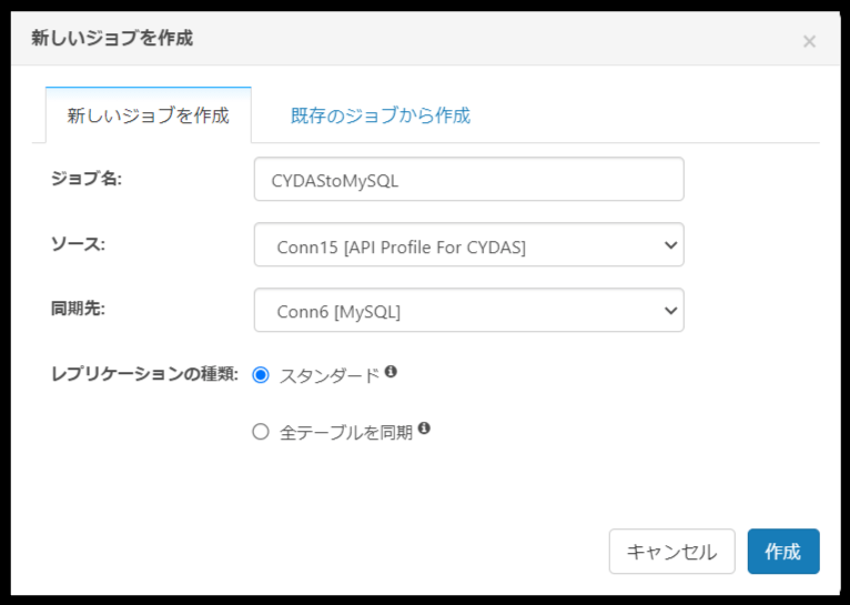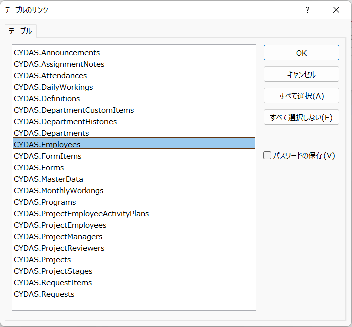 ジョブを作成した後は、CYDAS PEOPLE の同期対象となる任意のテーブルを選択しましょう。