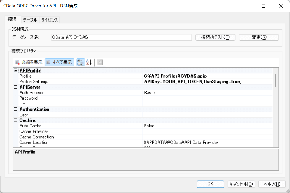 CData API Drvier で CYDAS PEOPLE APIに接続するためには専用の設定ファイル(Profile)が必要になります。