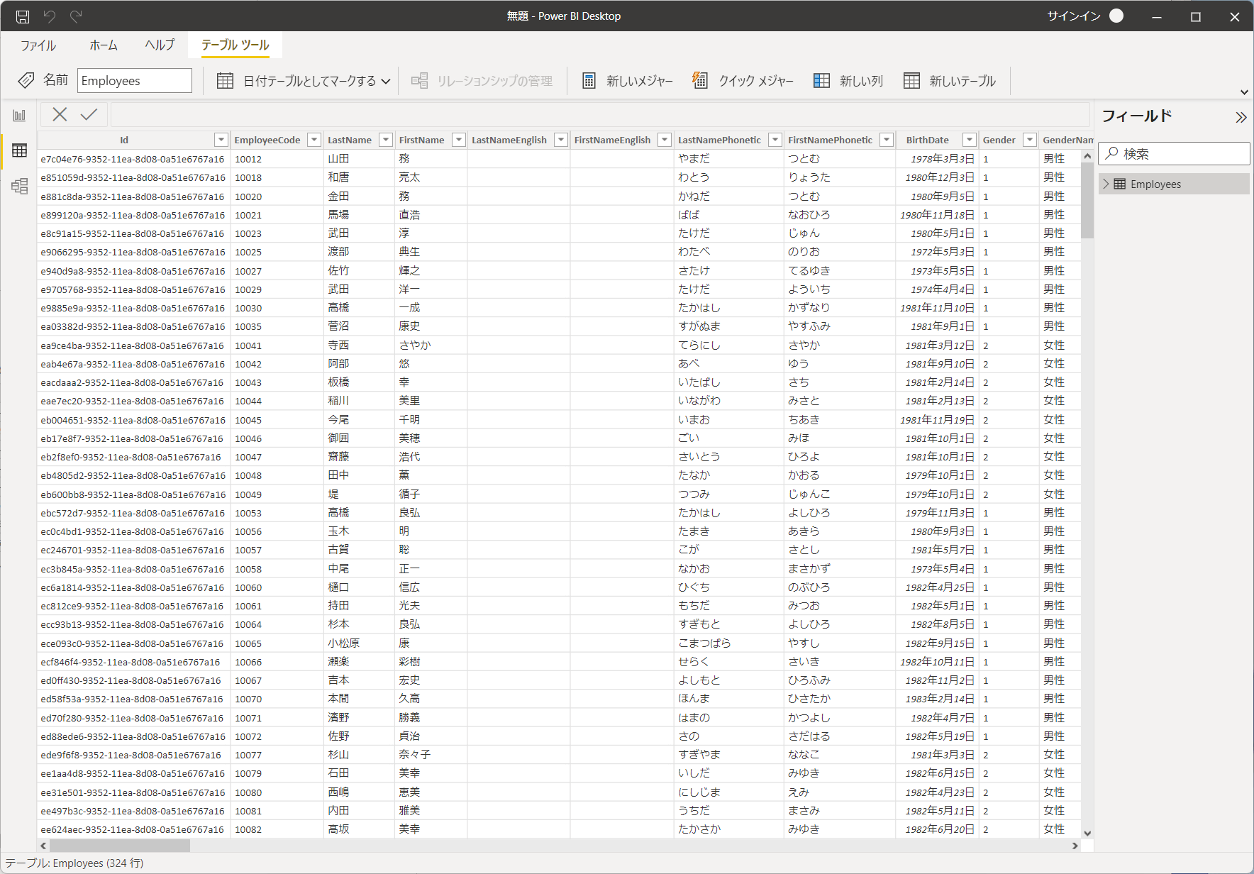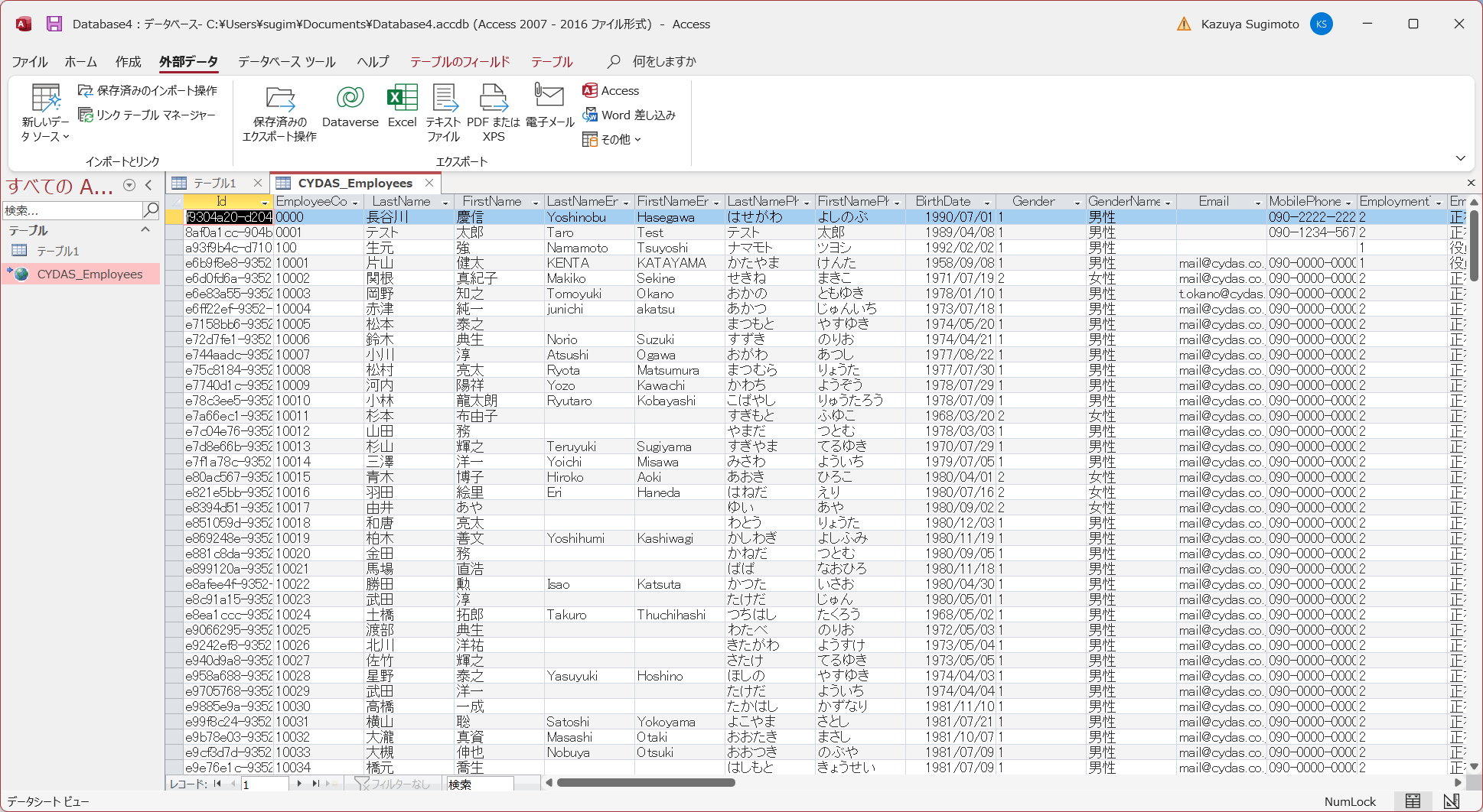 設定後、リンクテーブルが追加され、以下のようにCYDAS PEOPLEのデータを閲覧することができるようになります。もちろん、通常通りクエリデザイナーでも使用可能です。