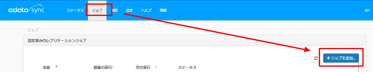 接続完了後、新しくジョブを作成します。