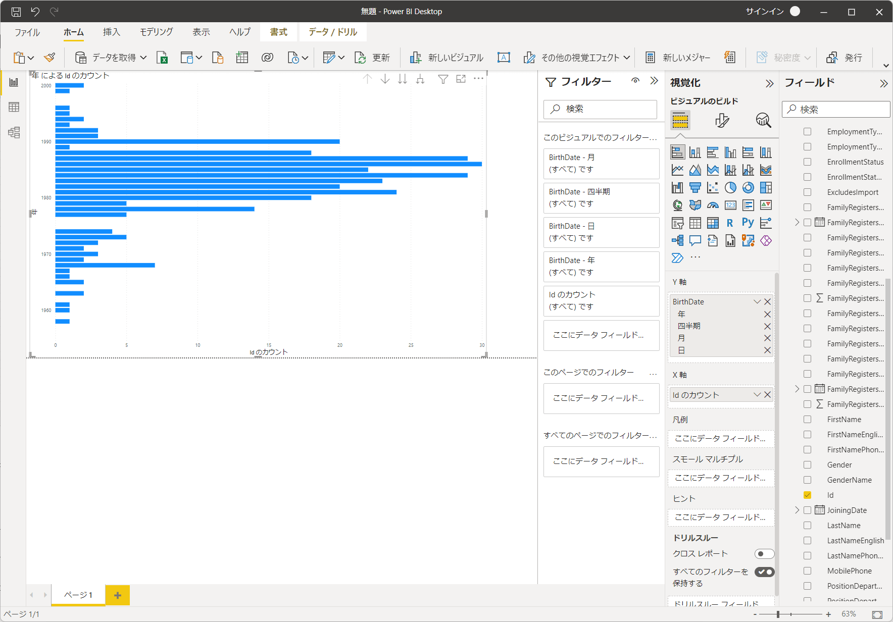 あとはPoewr BIの機能を用いて、ビジュアライズに利用することができます。