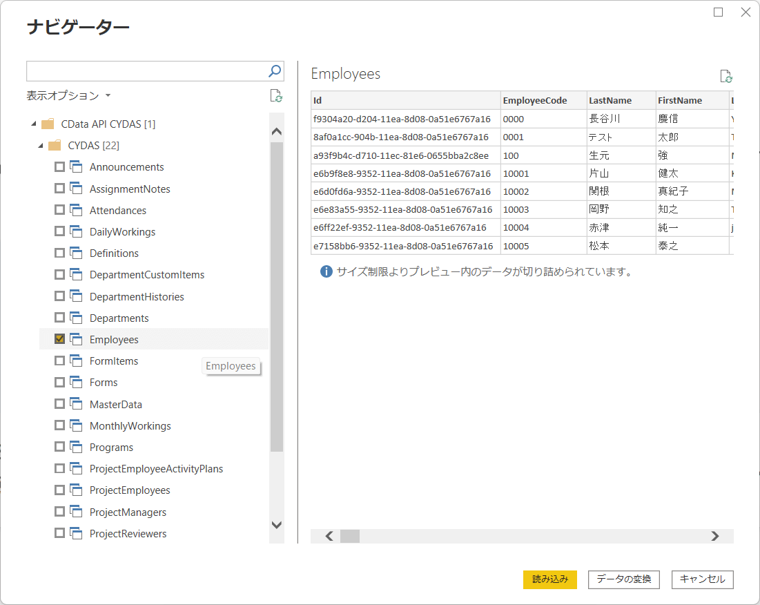 データのプレビュー画面で、実際に取得が成功しているかどうかを確認できました。