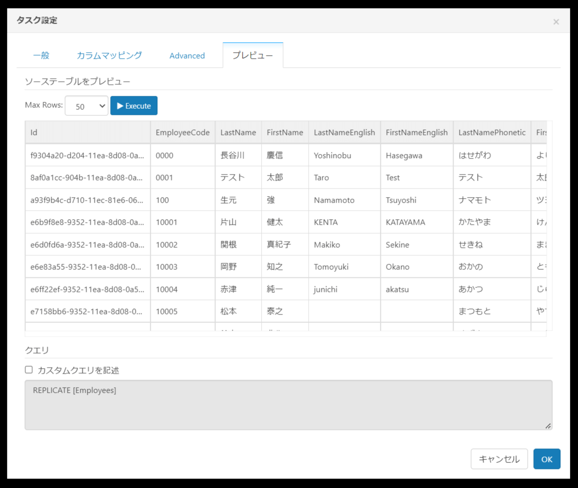 試しに手動で実行してみると、それぞれのレプリケーション件数が結果として表示されます。
