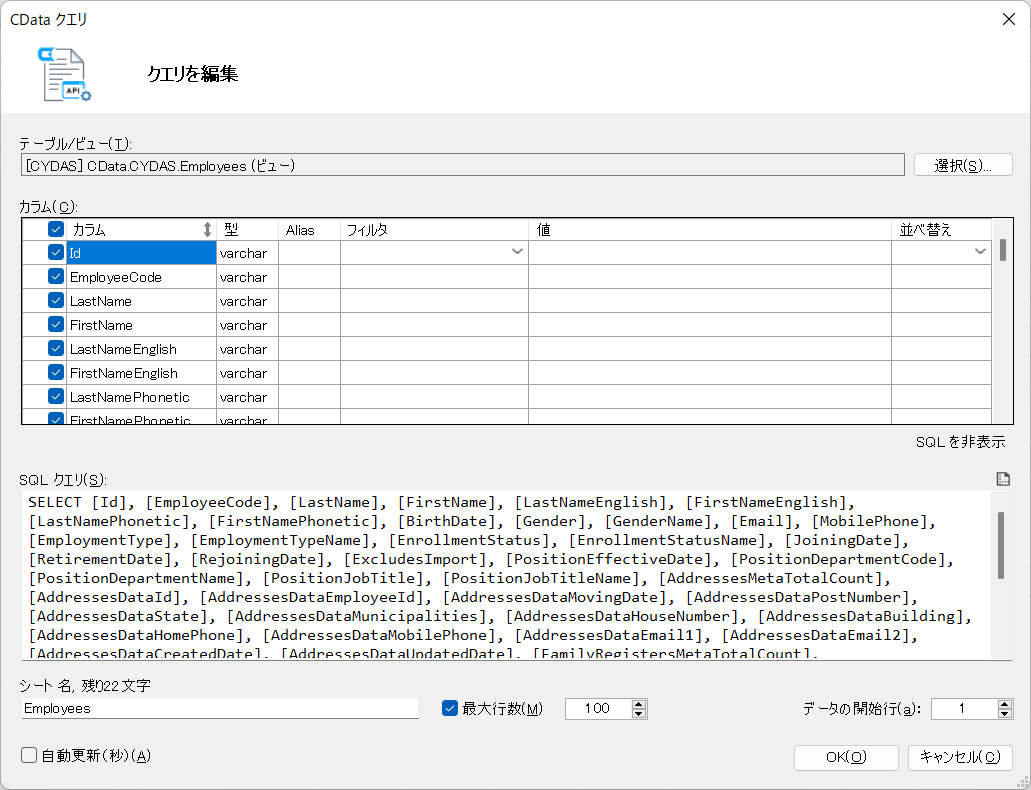 これで CData API Driver から CYDAS PEOPLE API への接続が完了します。