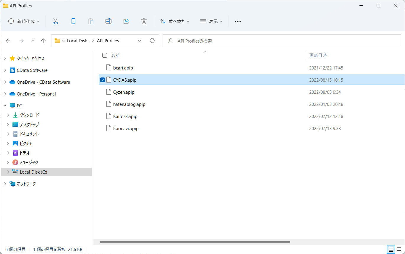 保存先フォルダは後ほど使用するので「C:\APIProfiles\CYDAS.apip」といったツールからアクセスが可能な任意のフォルダに配置してください。