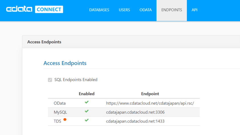 これだけで、kintone に接続できるMySQLやTDSのエンドポイントが生成されます。