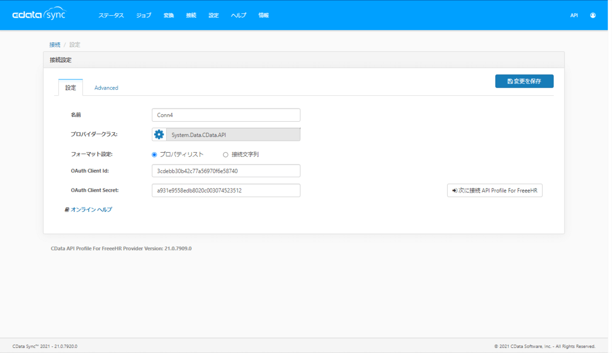 なお、CData Sync Windows版の場合は「freeeHR.apip」のプロファイルをSyncの本体が存在するフォルダの「www\app_data\profiles」に配置してください。profilesフォルダが存在しない場合は手動で作成してください。