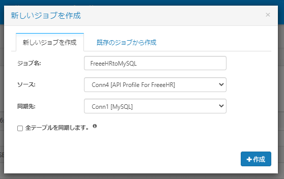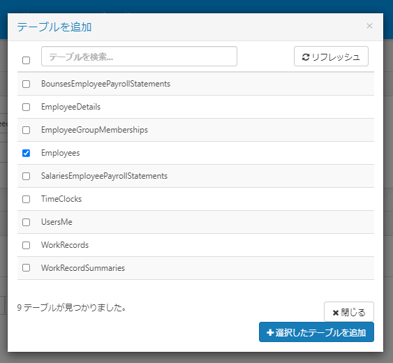 ジョブを作成した後は、freee 人事労務 の同期対象となる任意のテーブルを選択しましょう。