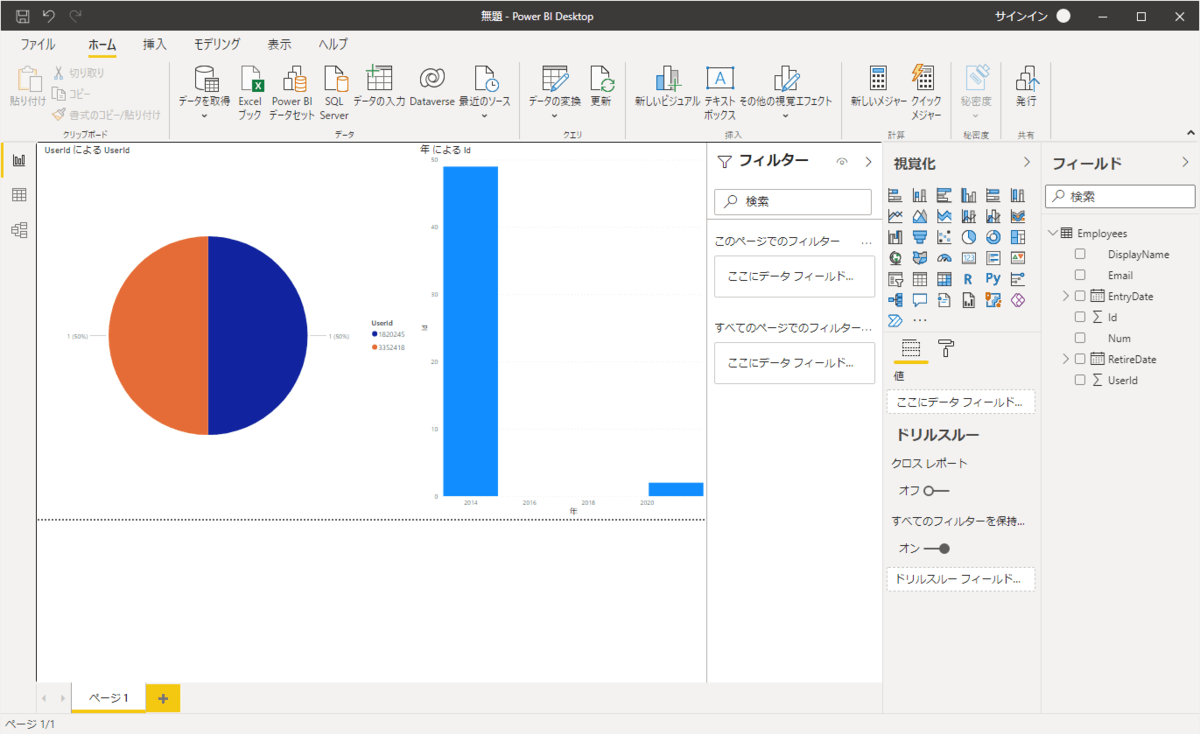 あとはPoewr BIの機能を用いて、ビジュアライズに利用することができます。