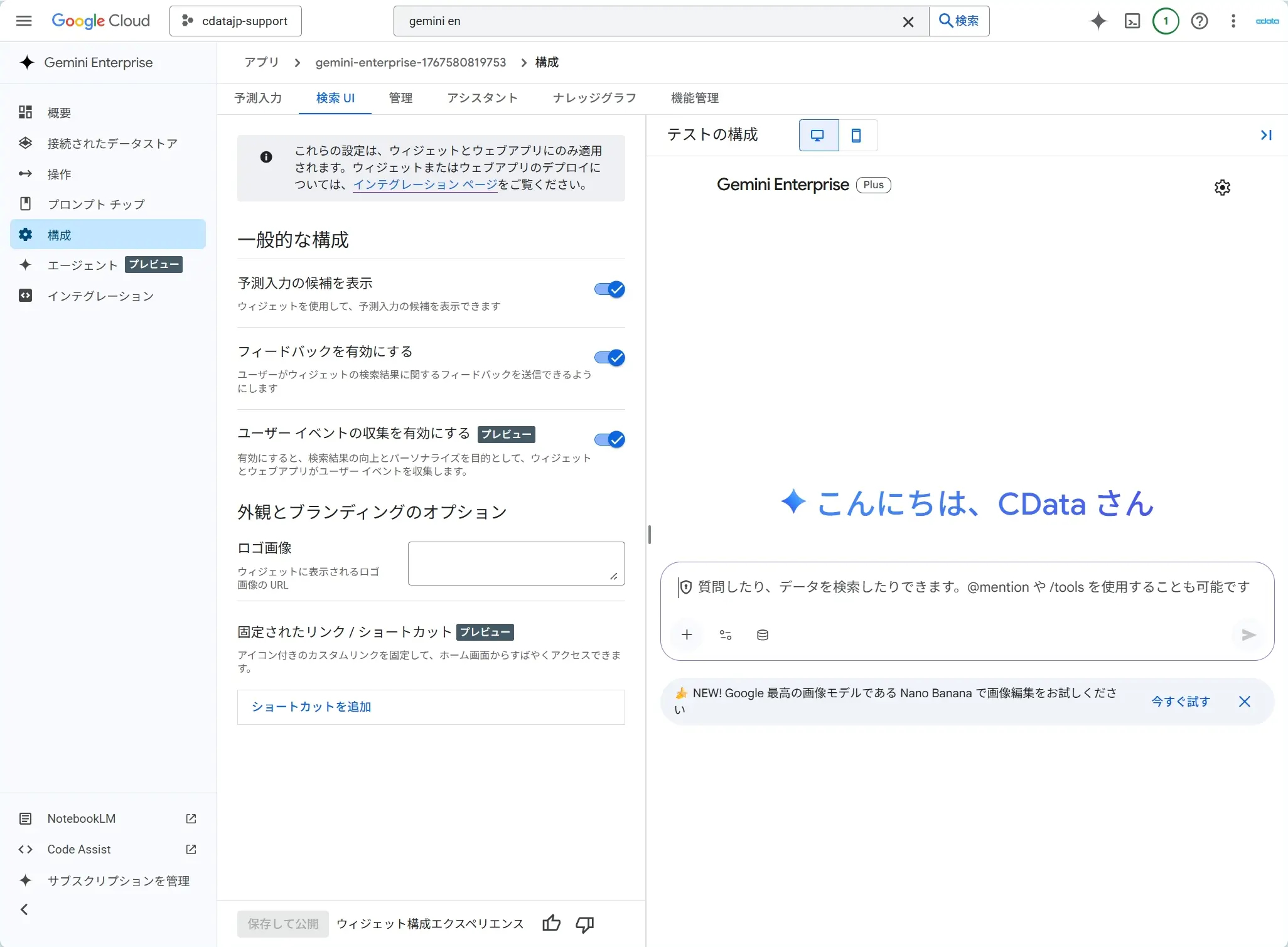 デフォルトではGemini Enterprise のロゴが表示されていますが、これを企業ロゴに差し替えることもできるので良いですね。