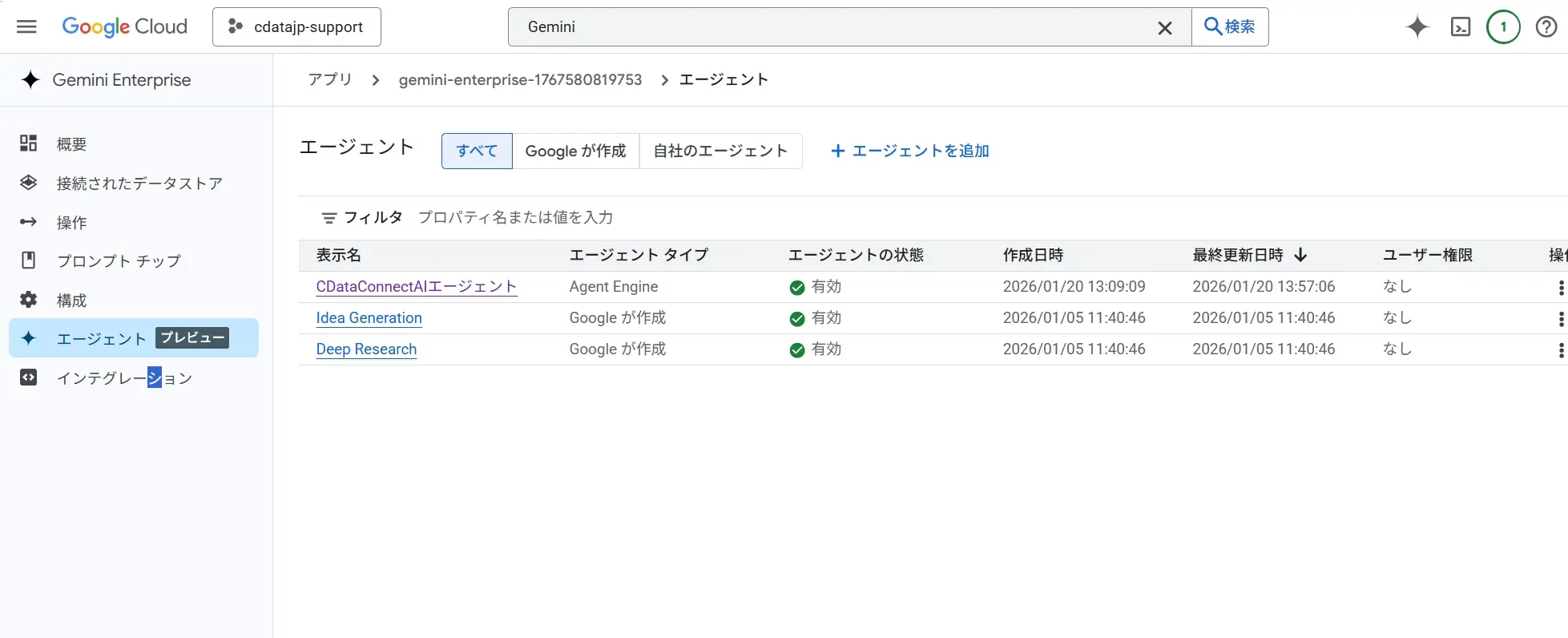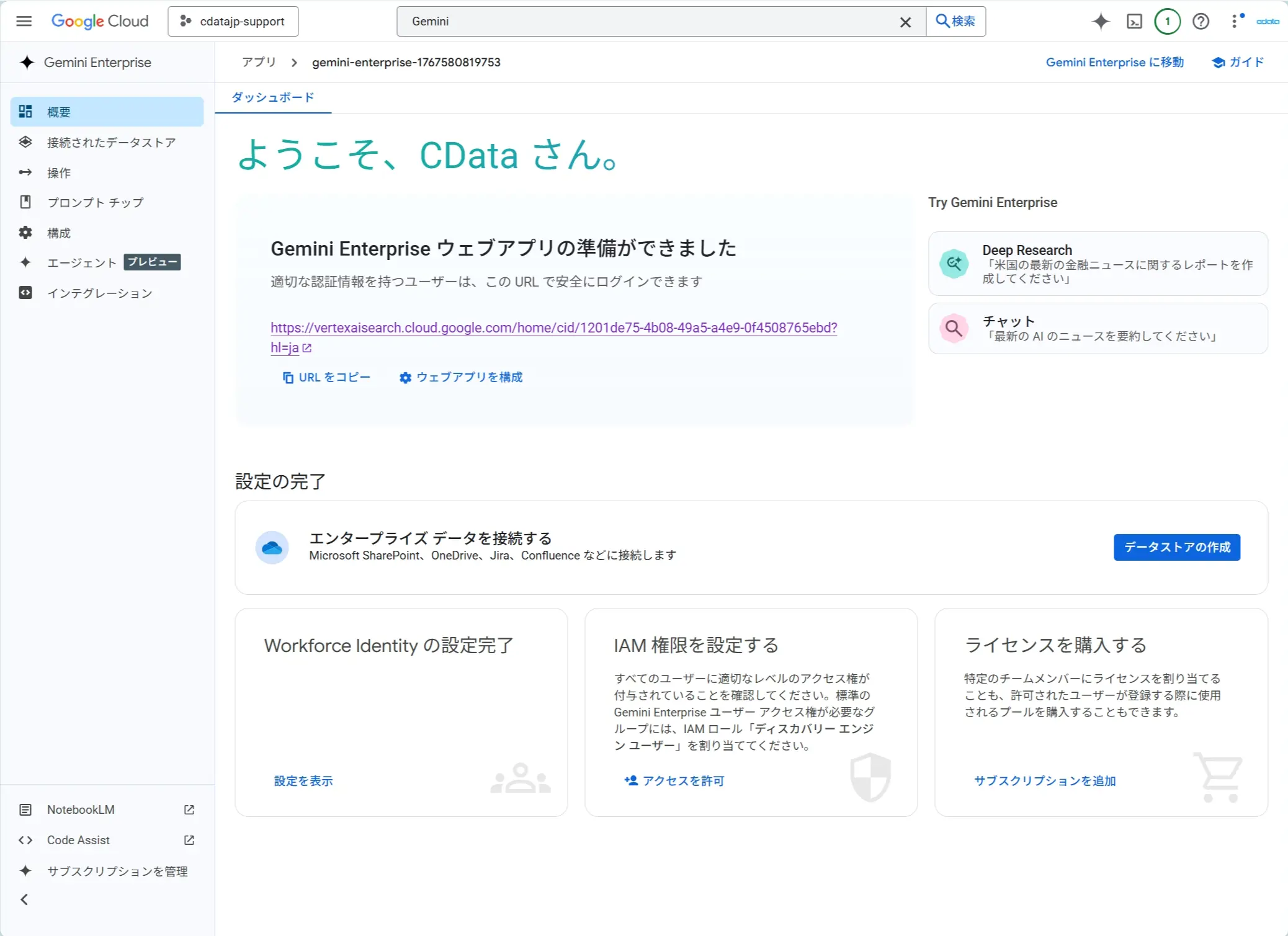 これで、Gemini Enterprise の環境が構成されます。結構簡単ですね。