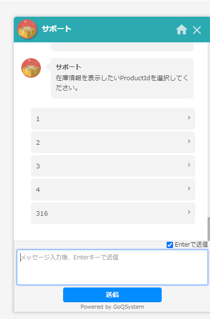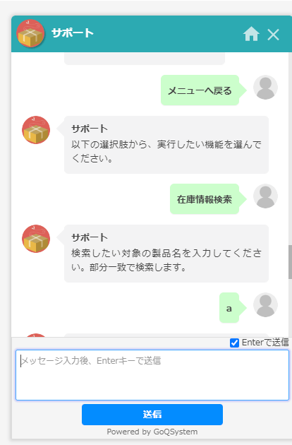 実際に構成したチャットボットは以下のようになります。