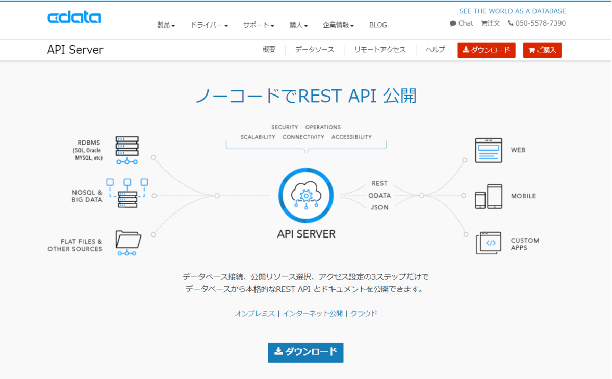 CData では、各種RDBやNoSQLから自動的にREST Ful API を生成することができる、CData API Server という製品を提供しています。