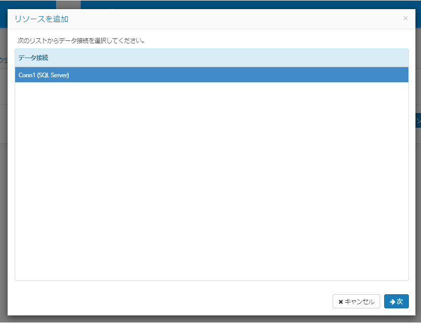 予め作成しておいた「SQL Server」のコネクションを選択して、次へ移動し