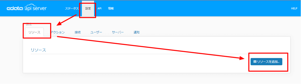 「設定」→「リソース」タブに移動し「新しいリソースを追加」をクリックします。
