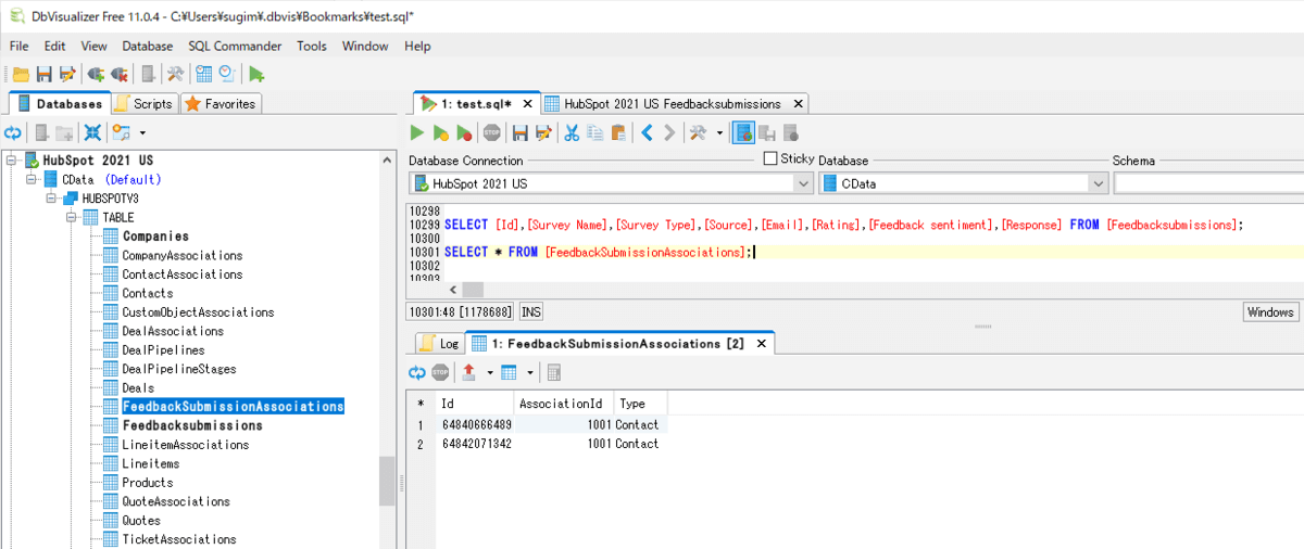 CData HubSpot Driver では新しく「Feedbacksubmissions」「FeedbackSubmissionAssociations」という2種類のテーブルをサポートしました。