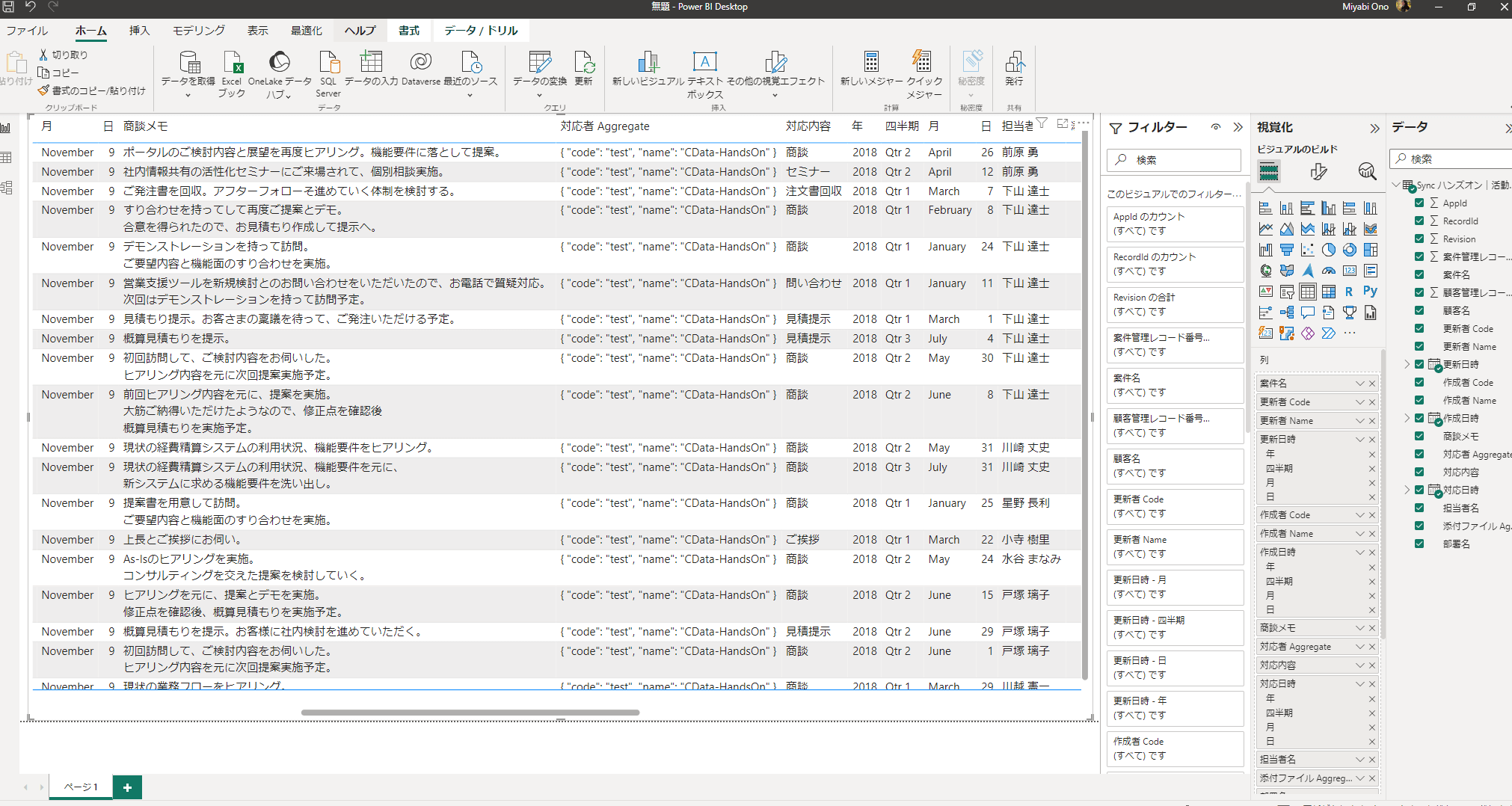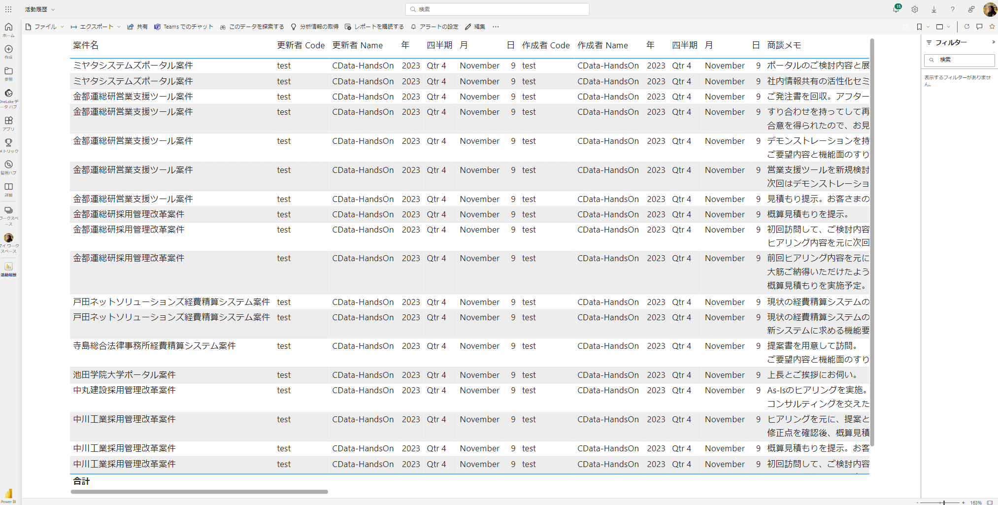 案件の活動状況を一目で見ることができるレポートを作成できました。