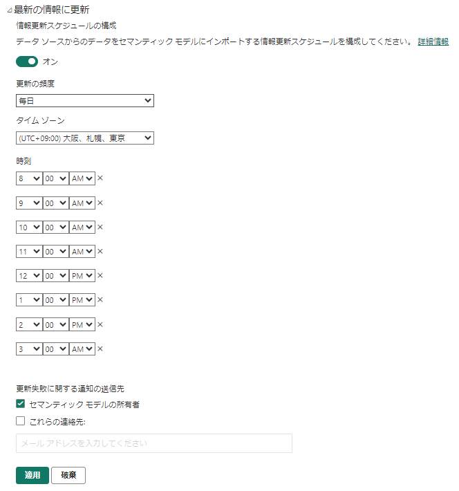 5. Power BI Service 上でレポートをスケジュール更新できるように設定する