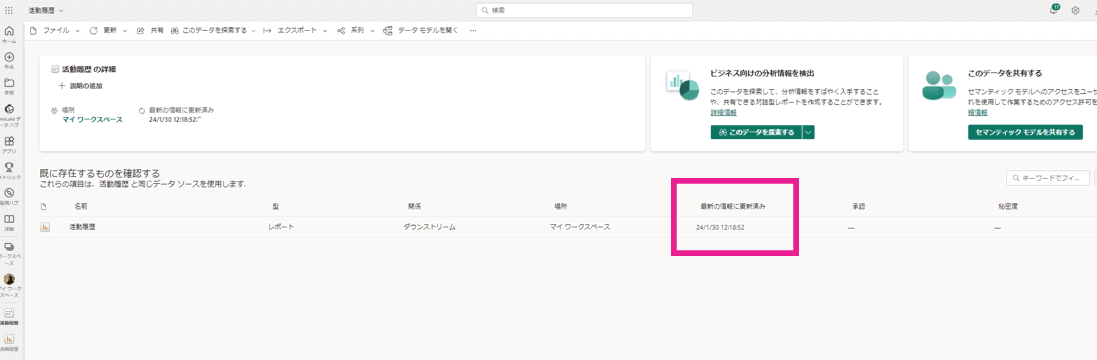 更新スケジュールを設定したら、これでPower BI Desktop 上から発行したkintone のレポートが自動で定期的に更新されるようになりました!