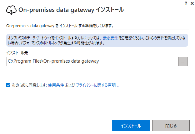 標準モードのオンプレミスデータゲートウェイをインストールします。