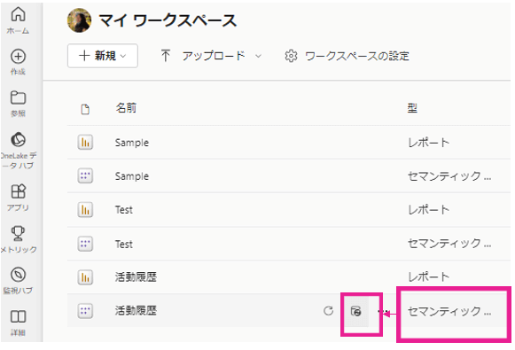 セマンティックモデルの更新のスケジュール設定のアイコンを選択します。