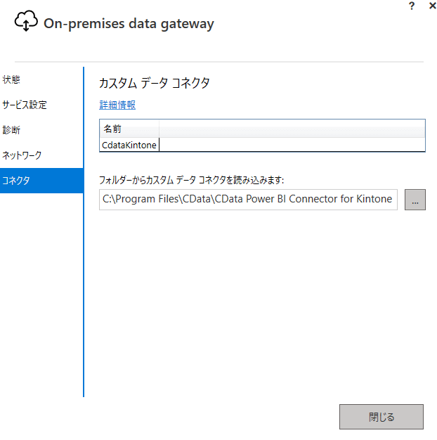 ・ゲートウェイクラスタ名:CDataKintone(上記で作成したオンラインデータゲートウェイを選択してください)